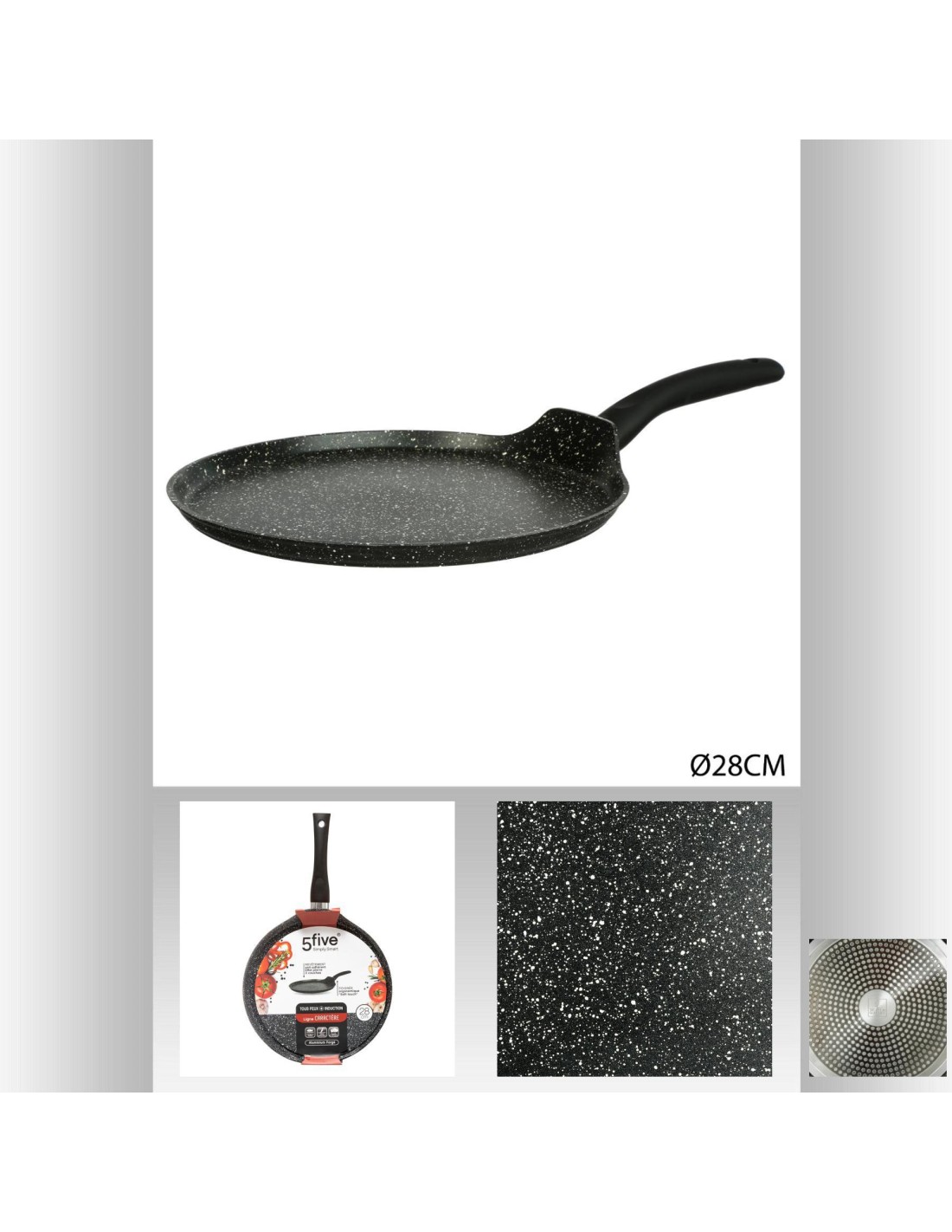 Poele crepe 28 alu forge carac L. 28,5 x P. 47 x H. 5,7 cm