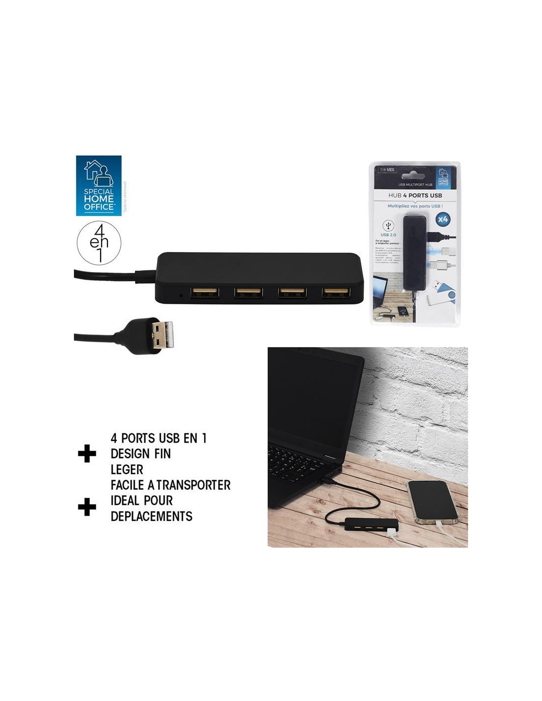 Transformez un port USB en 4 ! - 4 ports - Léger - Design fin - Nomade - Idéal pour les déplacements ! - Composition : plastique