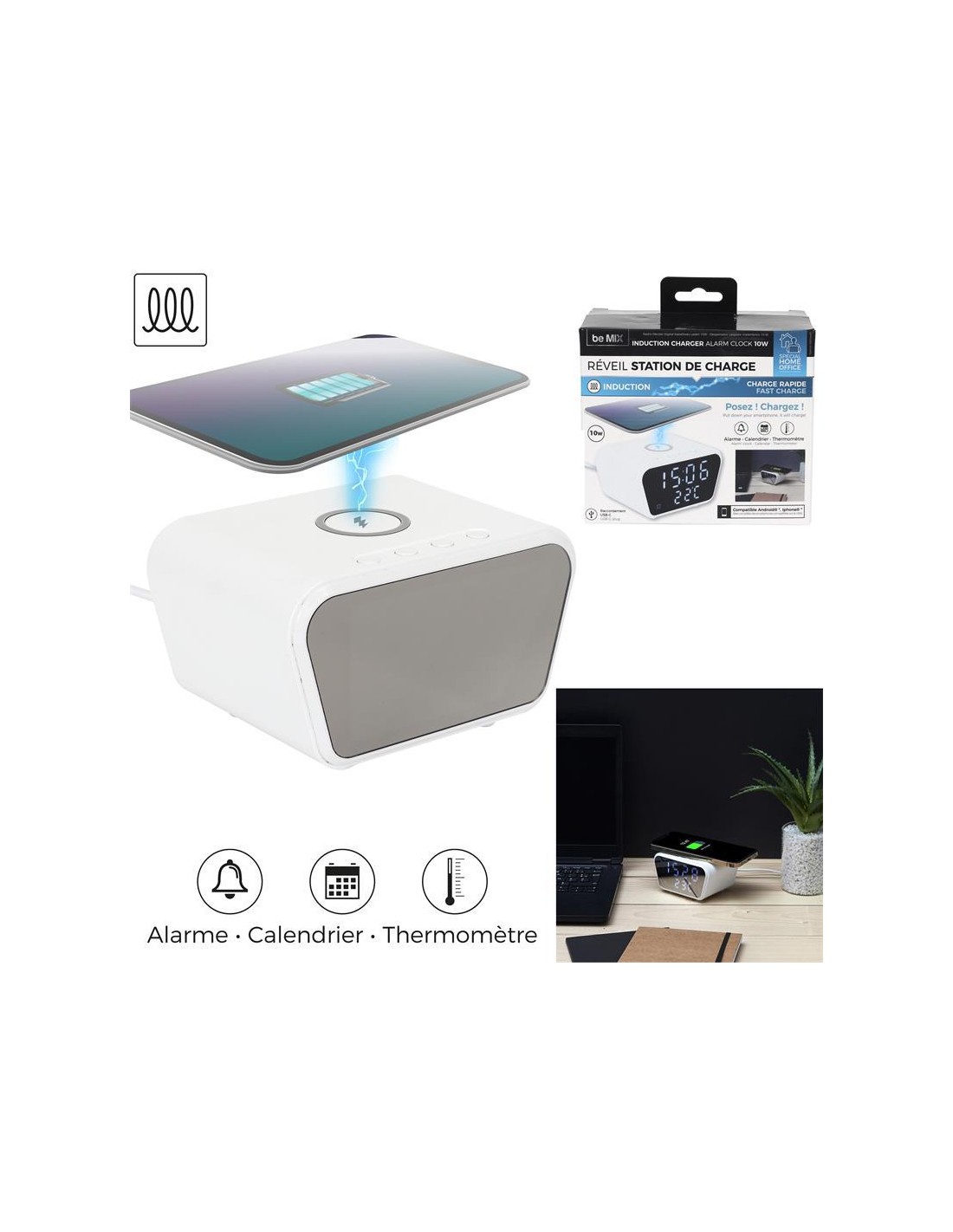 ht2163 - reveil chargeur induction 10w m6