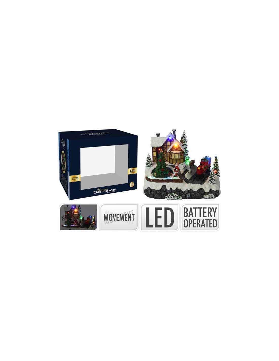 Réalisez le plus beau des décors de Noél gréce é cette scéne de Montagne et créez une ambiance chaleureuse qui émerveilleront petits et grands - Dimension produit: L. 33 x P. 30 x H. 46 cm - Alimentation : TRANSFO PRISE TYPE E - Ampoules : 75 LED