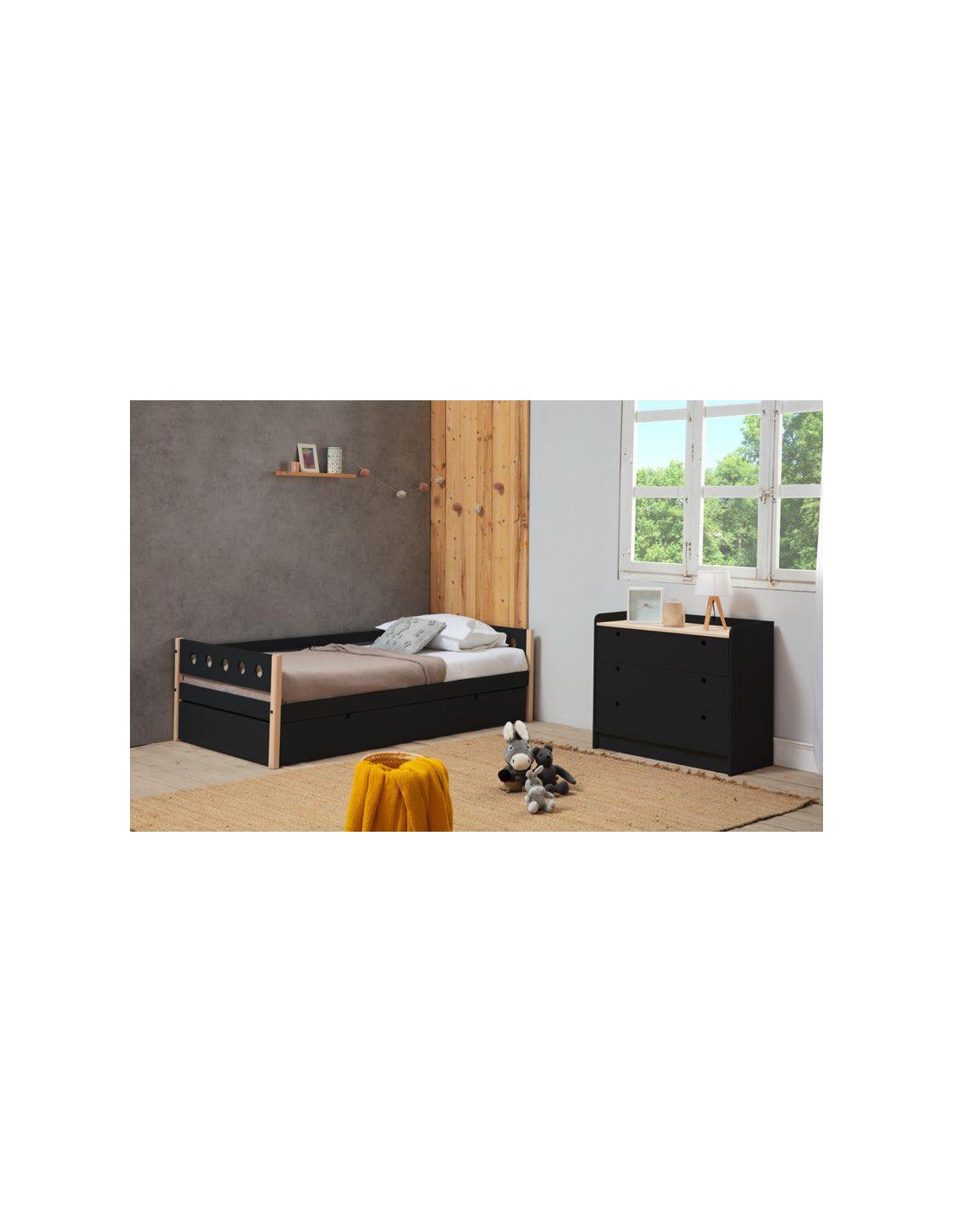 Couchage 90x190 - Structure en pin/MDF - Vendu avec sommier, sans matelas - Dim: 98,8x200x60cm.