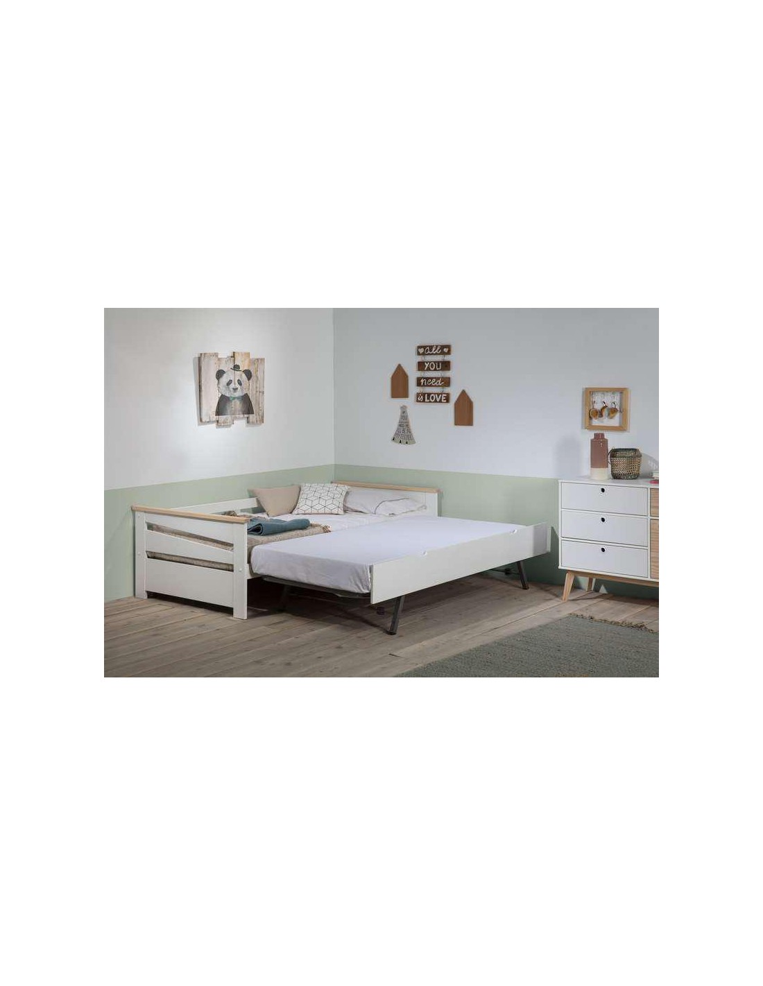 Lit combiné 90 x 200 cm avec bureau et rangements - Blanc et naturel