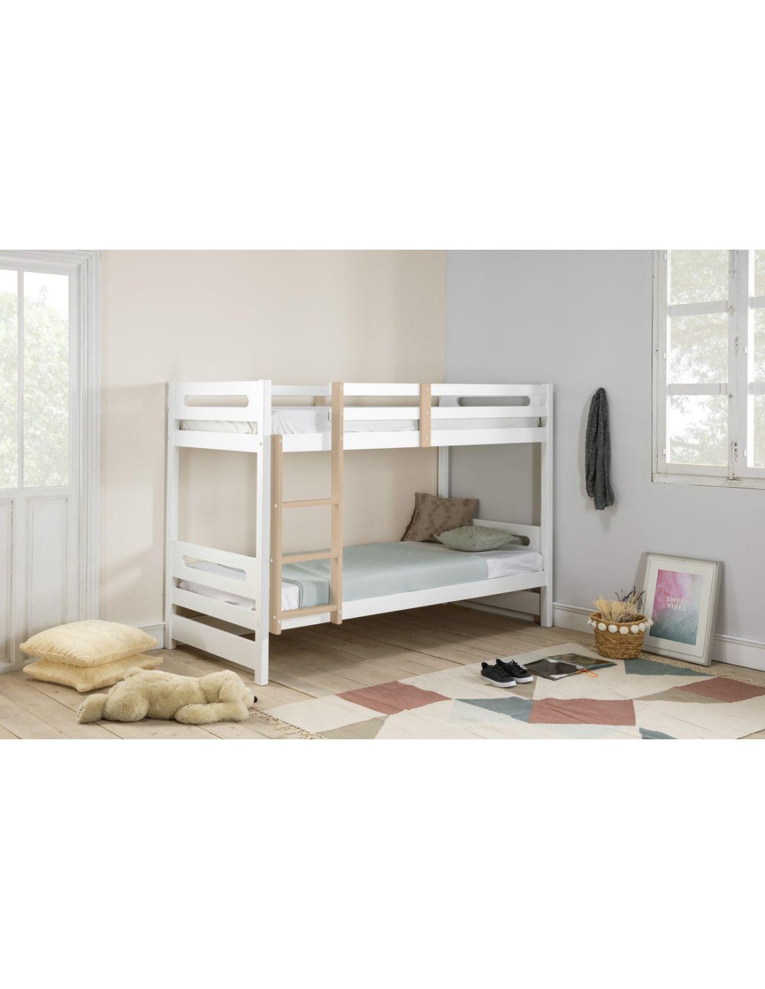 Lits superposés 90x190cm blanc et naturel SAMI. un lit extrémement pratique si vous souhaitez deux couchages avec un minimum d'encombrement. Structure en mdf, finition laqué blanc.Piétement et lattes en pin massif naturel.Sommier inclus. Matelas non inclus.Hauteur sol / sommier inférieur : 25cm hauteur sol / sommier supérieur : 104,5 cm espace entre les deux couchages : 79,5 cm dimensions : 98 x 205 x h155cmLits superposés 90x190cm blanc et naturel SAMI. un lit extrémement pratique si vous souhaitez deux couchages avec un minimum d'encombrement.Structure en mdf, finition laqué blanc.Piétement et lattes en pin massif naturel.Sommier inclus. Matelas non inclus.Hauteur sol / sommier inférieur : 25cm hauteur sol / sommier supérieur : 104,5 cm espace entre les deux couchages : 79,5 cm dimensions : 98 x 205 x h155cm