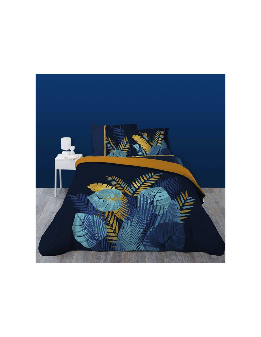 1442566-parure 3 p. 240 x 220 cm flanelle imprimee dessin place prusseor