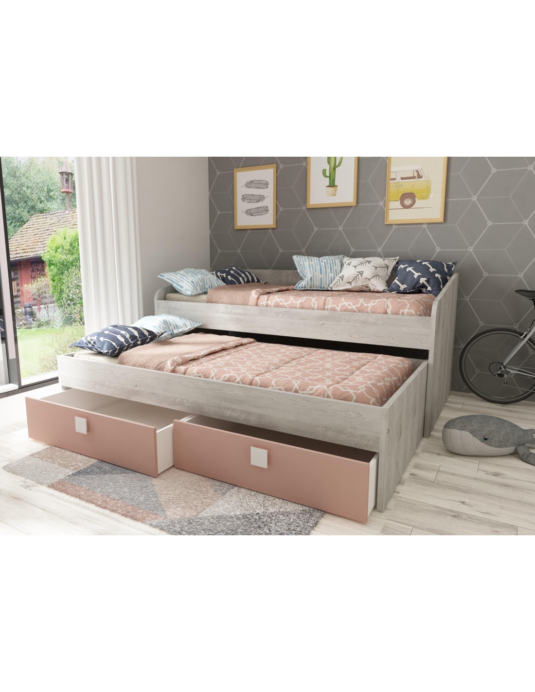 - Structure : panneaux de particules- Coloris : bois grisé, bleu, rose ou blanc- Peut accueillir 2 couchages 90x190 cm- Sommiers et matelas non inclus- 2 tiroirs pour permettre é votre enfant de ranger des affaires é portée de main sous son lit- S'adapte facilement é tous les univers de chambre- Moderne et universel- Qualité robuste et durable- Dimensions totales : Largeur : 96 cm, Profondeur : 202 cm, Hauteur : 90 cm- Poids : 102,45 kg- Structure : panneaux de particules- Coloris : bois grisé, bleu, rose ou blanc- Peut accueillir 2 couchages 90x190 cm- Sommiers et matelas non inclus- 2 tiroirs pour permettre é votre enfant de ranger des affaires é portée de main sous son lit- S'adapte facilement é tous les univers de chambre- Moderne et universel- Qualité robuste et durable- Dimensions totales : Largeur : 96 cm, Profondeur : 202 cm, Hauteur : 90 cm- Poids : 102,45 kg