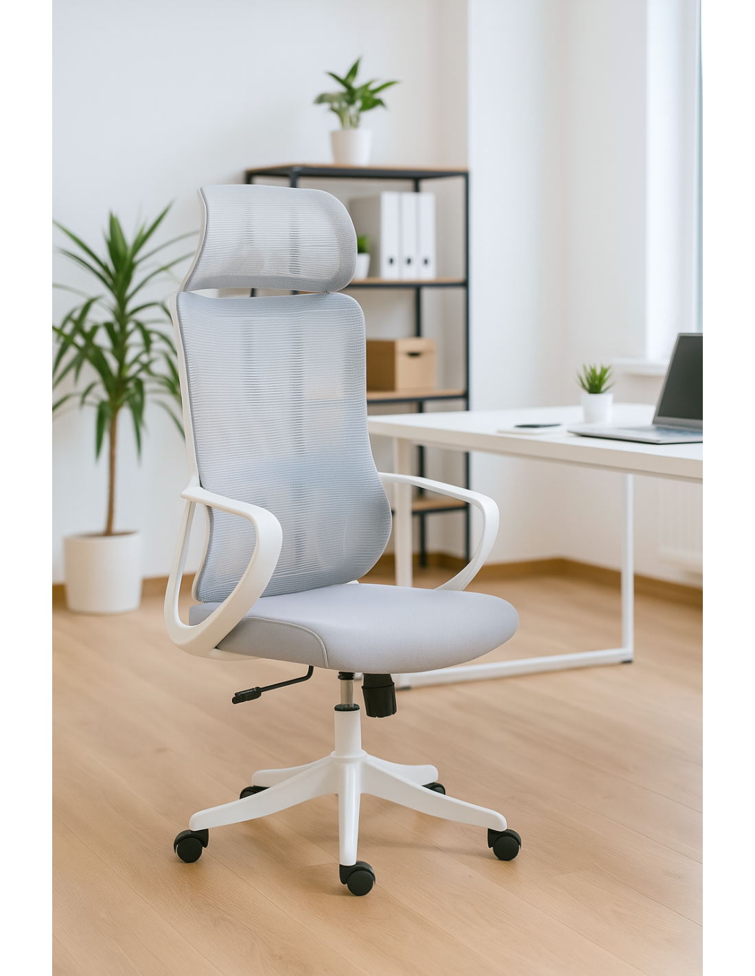 CARACTéRISTIQUESé:Chaise pivotante é 360 degrésAppuie-téte réglable en hauteurAccoudoirs fixes en polypropyléneDossier en polypropyléne injectéDossier en résilleAssise rembourrée en résilleMécanisme d'inclinaison avec blocage de l'inclinaisonLevier de réglage de la hauteurPiétement en métal chromé de 55écmRoues en nylon de 50émmCharge maximaleé:...