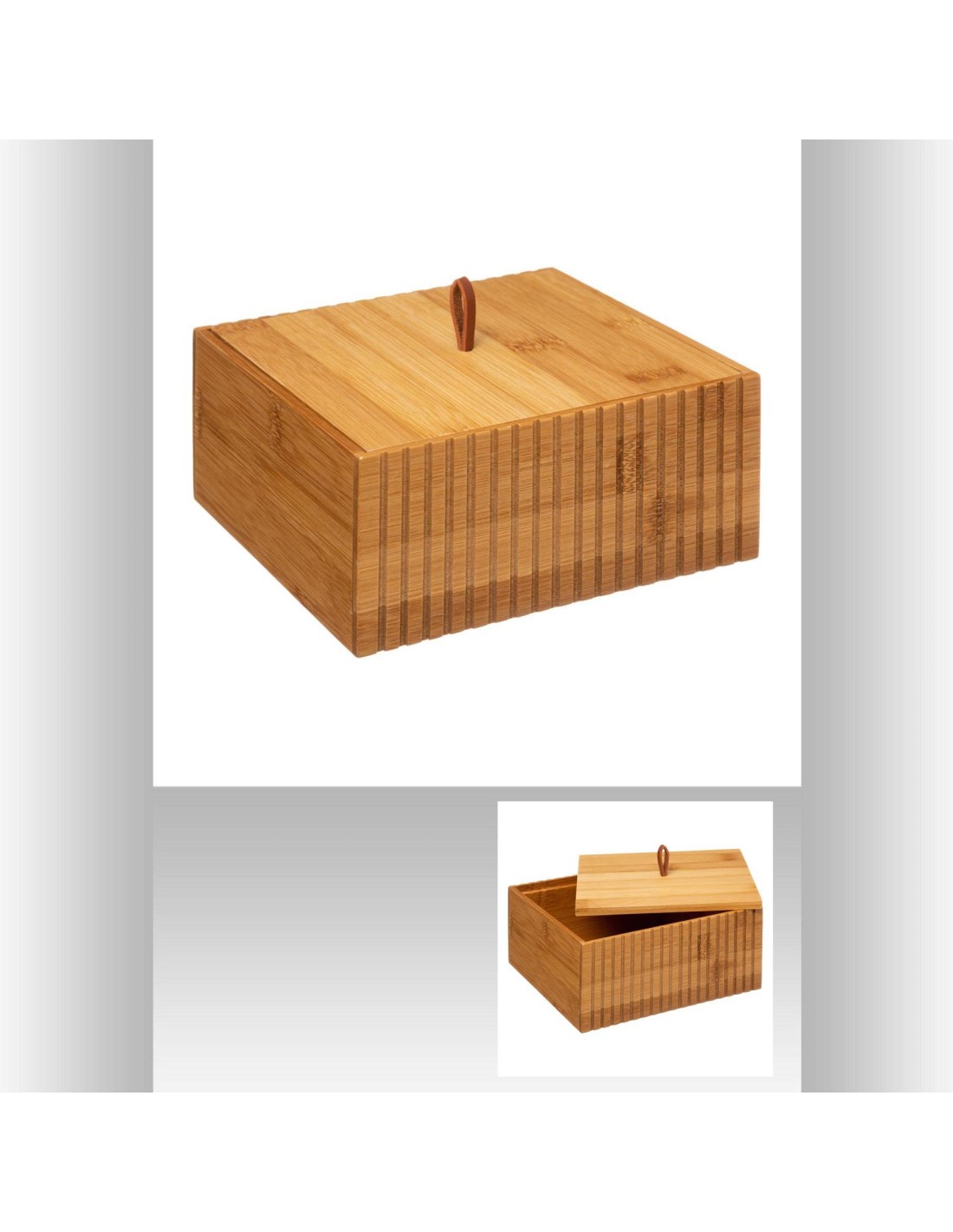 boite a coton et coton tiges ps jaune couvercle bambou - jaune/bambou