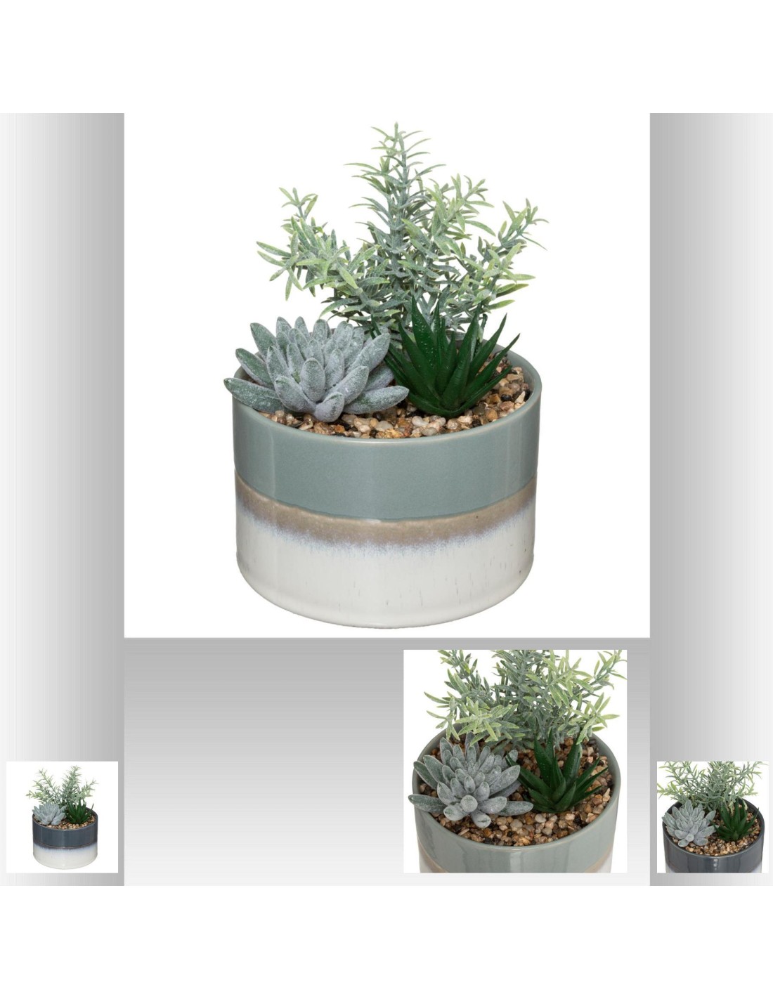 Plante grasse Nhi haut 17 cm avec pot ciment assorti