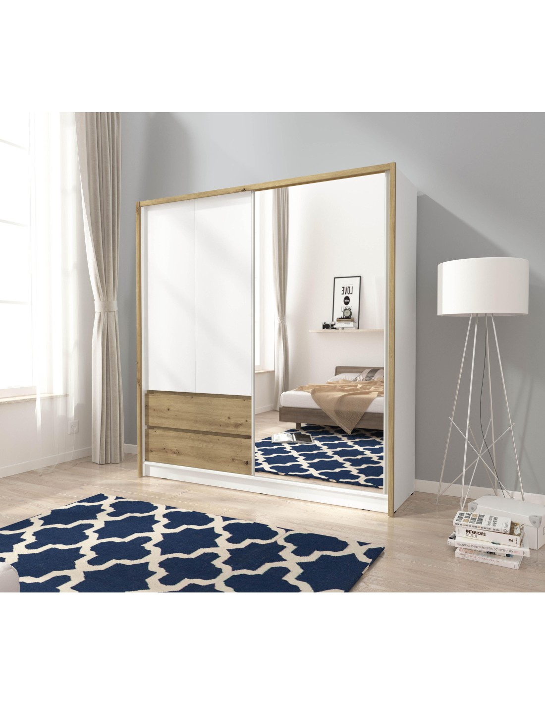 Caractéristiques du produit :Dimensions (LxHxP) : 206 x 200 x 51 cmDimensions du tiroir (lxhxp) : 92 x 15 x 40 cmMatériau : panneau stratifié (16 mm), chants ABS (0,5 mm), tringle de suspension en métal, glissiéres é billes, miroirCouleur : chéne artisanalCaractéristiques du produit :Dimensions (LxHxP) : 206 x 200 x 51 cmDimensions du tiroir (lxhxp) : 92...