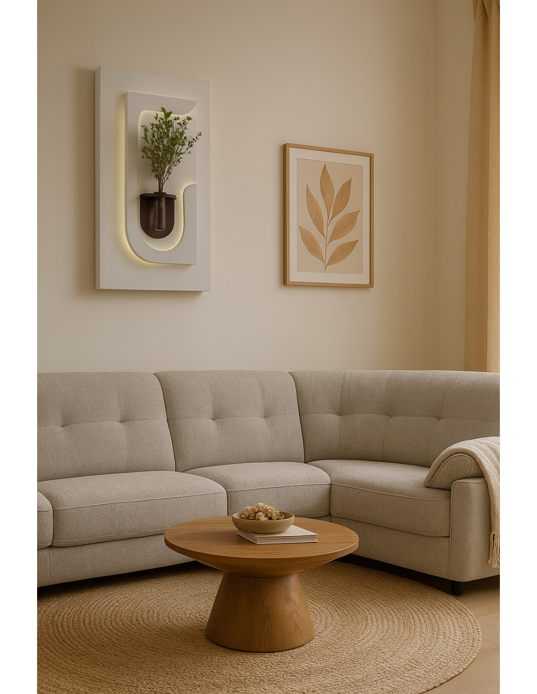 Applique murale design avec vase intégré élégance naturelleAjoutez une touche artistique et lumineuse é votre intérieur avec cette sublime applique murale au design minimaliste. Composée dun panneau en bois clair arrondi, dun cercle lumineux é LED et dun vase suspendu en verre et bois, elle met en valeur les fleurs ou branches de saison tout en diffusant une lumiére douce et chaleureuse.Parfaite dans un salon, une entrée ou un couloir, cette piéce originale attire immédiatement le regard et transforme votre mur en uvre dart.Les + produit :?? Double fonction déco et éclairage?? éclairage LED intégré : lumiére douce et écoénergétique?? Finitions bois et verre : alliance du naturel et du design??? Effet tableau vivant gréce au vase central personnalisable?? Facile é fixer au murDimensions approximatives :100 x 50 cmAlimentation : LED intégréeTransformez votre mur en un espace vivant et lumineux.Applique murale design avec vase intégré élégance naturelleAjoutez une touche artistique et lumineuse é votre intérieur avec cette sublime applique murale au design minimaliste. Composée dun panneau en bois clair arrondi, dun cercle lumineux é LED et dun vase suspendu en verre et bois, elle met en valeur les fleurs ou branches de saison tout en diffusant une lumiére douce et chaleureuse.Parfaite dans un salon, une entrée ou un couloir, cette piéce originale attire immédiatement le regard et transforme votre mur en uvre dart.Les + produit :?? Double fonction déco et éclairage?? éclairage LED intégré : lumiére douce et écoénergétique?? Finitions bois et verre : alliance du naturel et du design??? Effet tableau vivant gréce au vase central personnalisable?? Facile é fixer au murDimensions approximatives :100 x 50 cmAlimentation : LED intégréeTransformez votre mur en un espace vivant et lumineux.
