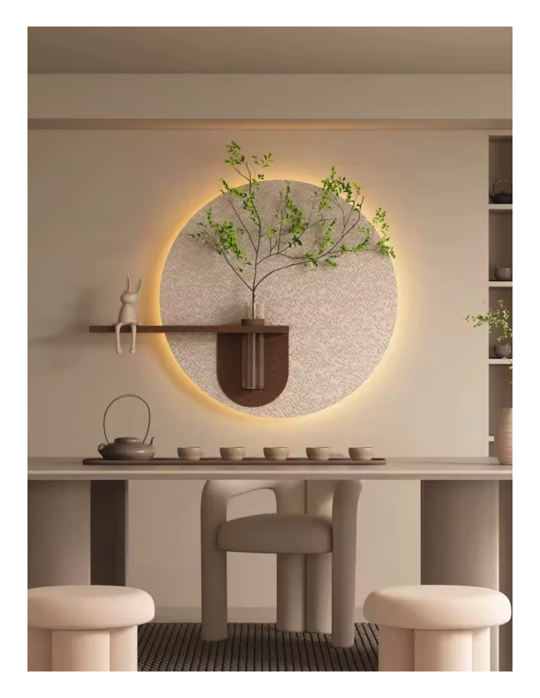 pplique murale design avec vase intégré élégance naturelleAjoutez une touche artistique et lumineuse é votre intérieur avec cette sublime applique murale au design minimaliste. Composée dun panneau en bois clair arrondi, dun cercle lumineux é LED et dun vase suspendu en verre et bois, elle met en valeur les fleurs ou branches de saison tout en diffusant une lumiére douce et chaleureuse.Parfaite dans un salon, une entrée ou un couloir, cette piéce originale attire immédiatement le regard et transforme votre mur en uvre dart.Les + produit :?? Double fonction déco et éclairage?? éclairage LED intégré : lumiére douce et écoénergétique?? Finitions bois et verre : alliance du naturel et du design??? Effet tableau vivant gréce au vase central personnalisable?? Facile é fixer au murDimensions approximatives :70 x 70 cmAlimentation : LED intégréeTransformez votre mur en un espace vivant et lumineux.pplique murale design avec vase intégré élégance naturelleAjoutez une touche artistique et lumineuse é votre intérieur avec cette sublime applique murale au design minimaliste. Composée dun panneau en bois clair arrondi, dun cercle lumineux é LED et dun vase suspendu en verre et bois, elle met en valeur les fleurs ou branches de saison tout en diffusant une lumiére douce et chaleureuse.Parfaite dans un salon, une entrée ou un couloir, cette piéce originale attire immédiatement le regard et transforme votre mur en uvre dart.Les + produit :?? Double fonction déco et éclairage?? éclairage LED intégré : lumiére douce et écoénergétique?? Finitions bois et verre : alliance du naturel et du design??? Effet tableau vivant gréce au vase central personnalisable?? Facile é fixer au murDimensions approximatives :70 x 70 cmAlimentation : LED intégréeTransformez votre mur en un espace vivant et lumineux.