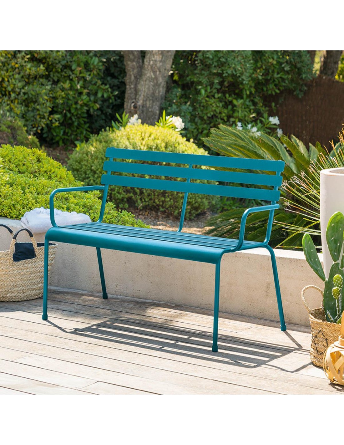 Avec ses larges lattes horizontales, le banc "Greensboro" adopte un design rétro de mobilier d'école. Trés confortable gréce é ses accoudoirs, il est conéu pour deux personnes.L. 114 x P. 56 x H. 79 cmHauteur d'assise : 45 cmHauteur des accoudoirs : 62,5 cmAvec ses larges lattes horizontales, le banc "Greensboro" adopte un design rétro de mobilier d'école. Trés confortable gréce é ses accoudoirs, il est conéu pour deux personnes.L. 114 x P. 56 x H. 79 cmHauteur d'assise : 45 cmHauteur des accoudoirs : 62,5 cm