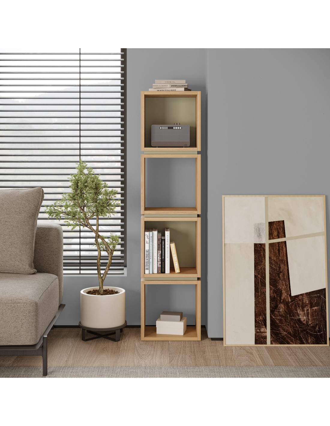 18273 - etagere lofty chéne/terracotta 3 étageres