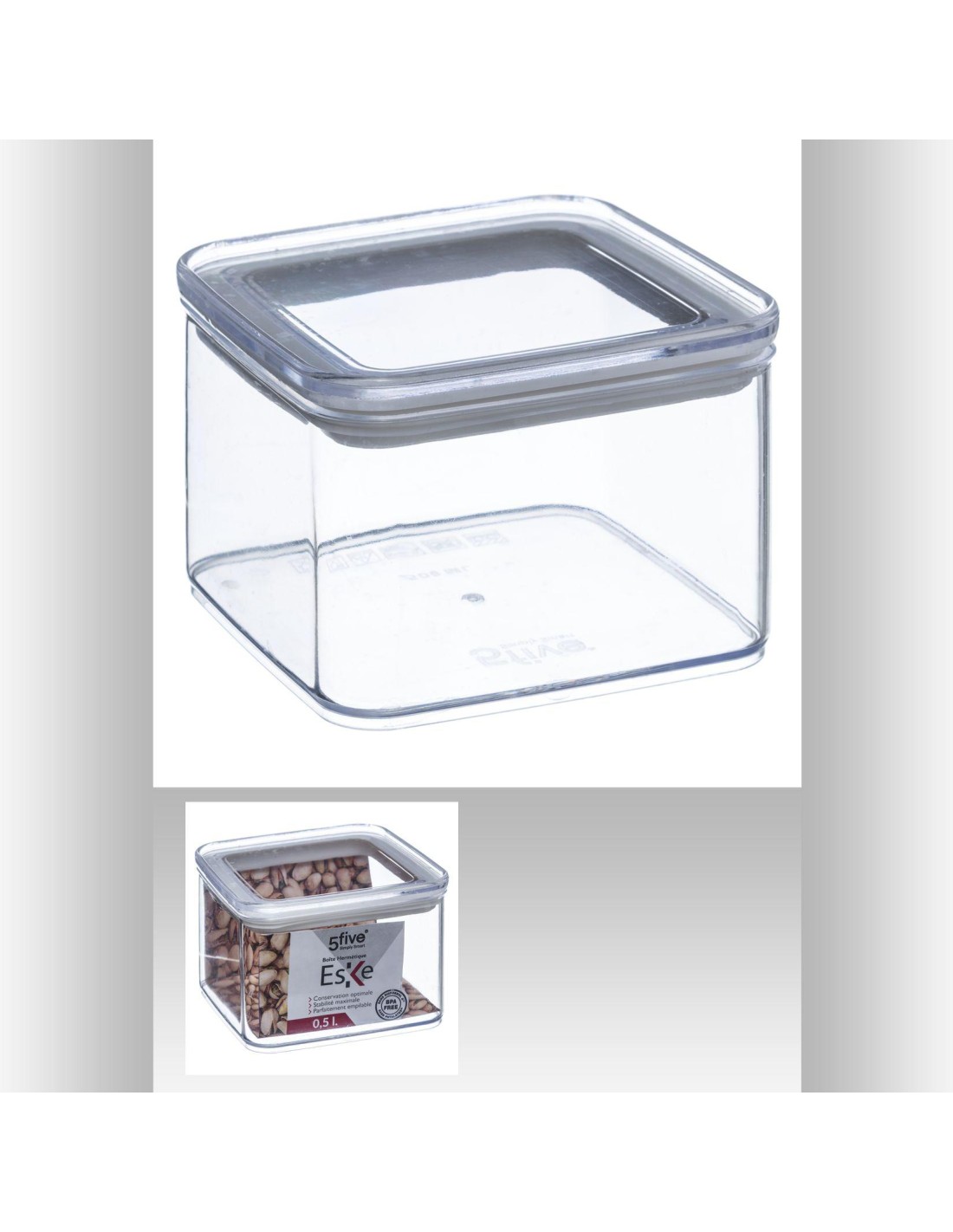 152040 - boite carre ps 0,5l eske L. 10,4 x P. 10,4 x H. 7 cm