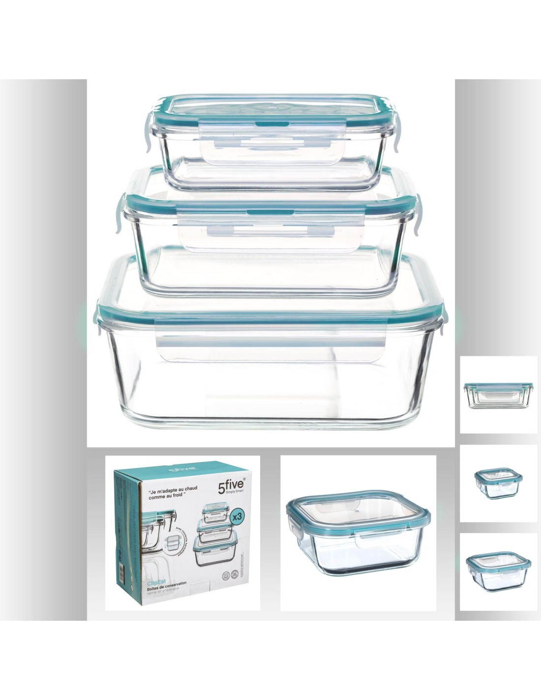 Boétes empilables. Hermétique gréce aux clips de fermeture et au joint en silicone. Dateur intégré permettant d'indiquer la date de péremption des aliments.