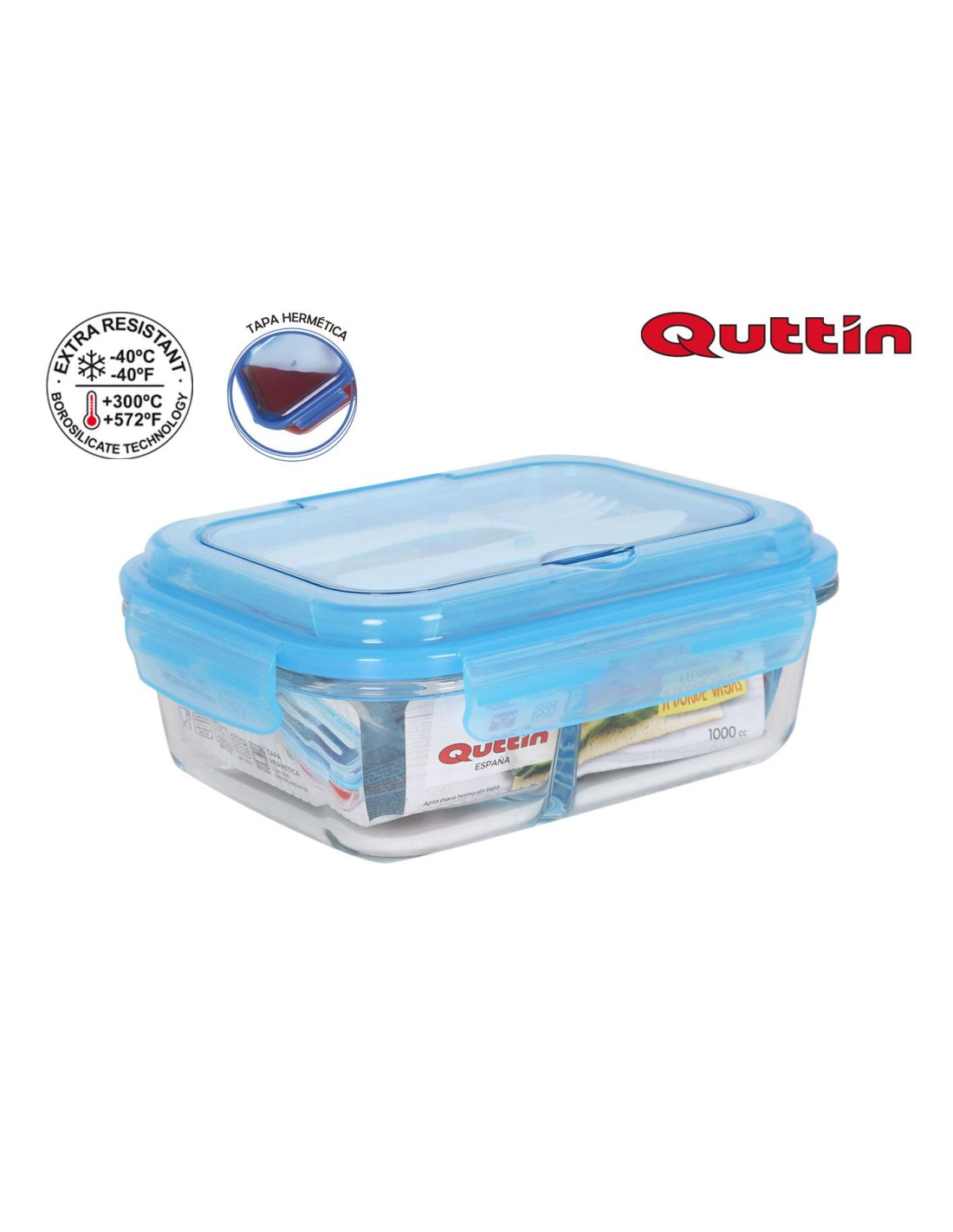 Boéte de conservation en verre borosilicate 1,3L, avec couvercle en verre trempé. Aucun aliment en contact avec du plastique. Couvercle avec fermeture é clips étanche, gréce au joint d'herméticité. Valve d'aération idéale pour une utilisation au micro-ondes.Dimension produit: L. 18,5 x P. 23,7 x H. 7,9 cmPoids du produit: 0.963 KgMatiére: GLASS/BORO...