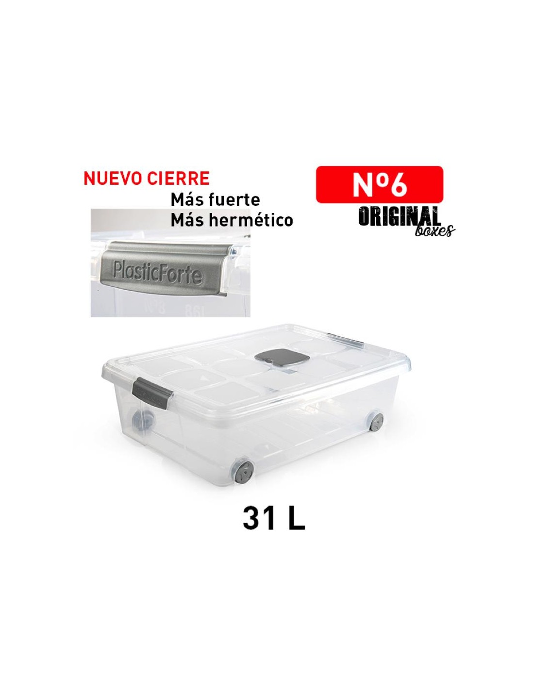 Plastique robuste, clips renforcés pour une trés bonne hermeticité. Charniéres au niveau du clip qui permettent de tenir le couvercle en position levée d'un seul cété. 4 roues bidirectionnelles pour un déplacement facile de la boite.