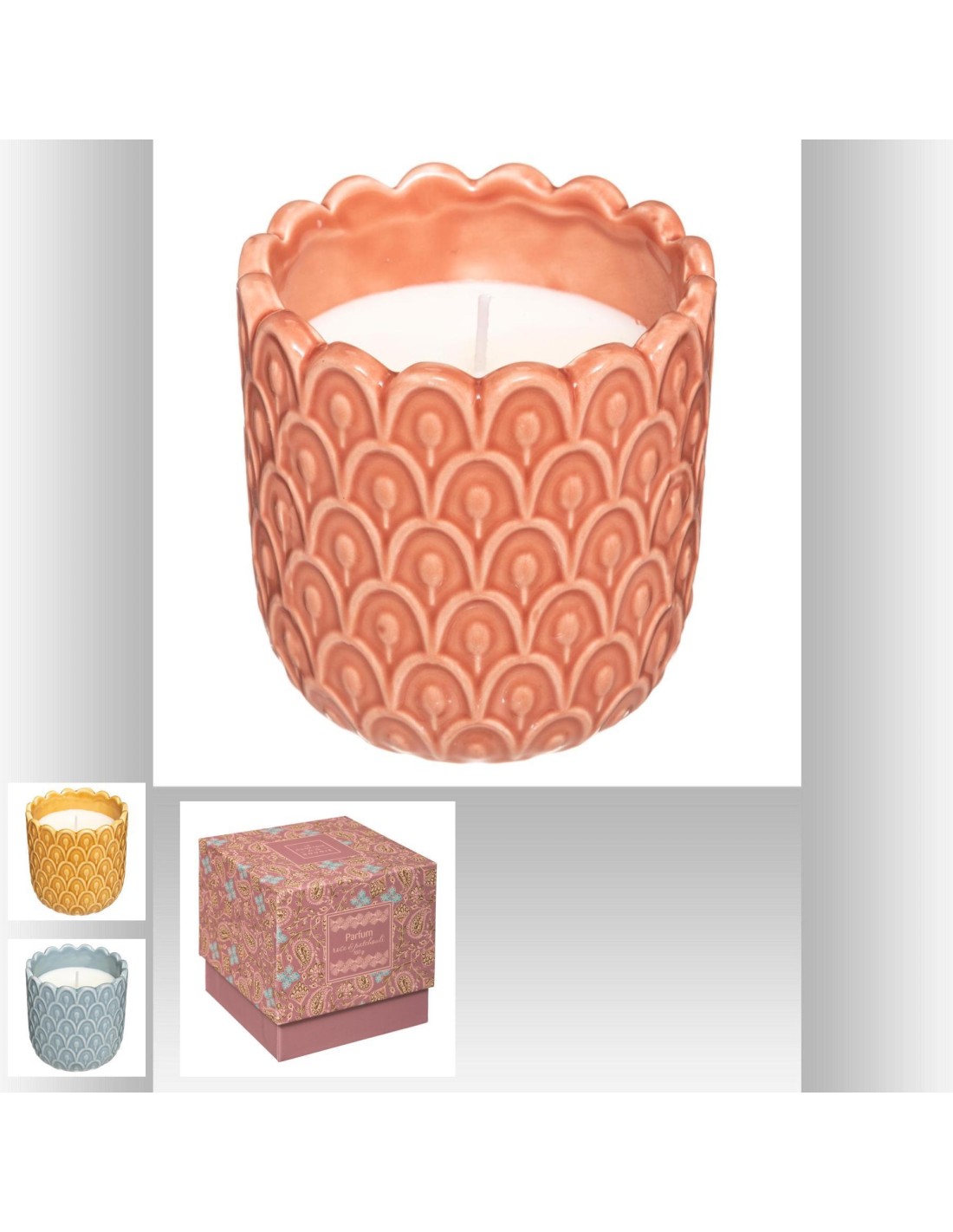 Chic et tendrement parfumée, cette bougie invite au voyage. - Bougie é 3 méches - durée de vie : 38 h - poids : 430 g - couvercle inclus - parfum : ambre, bois de sant