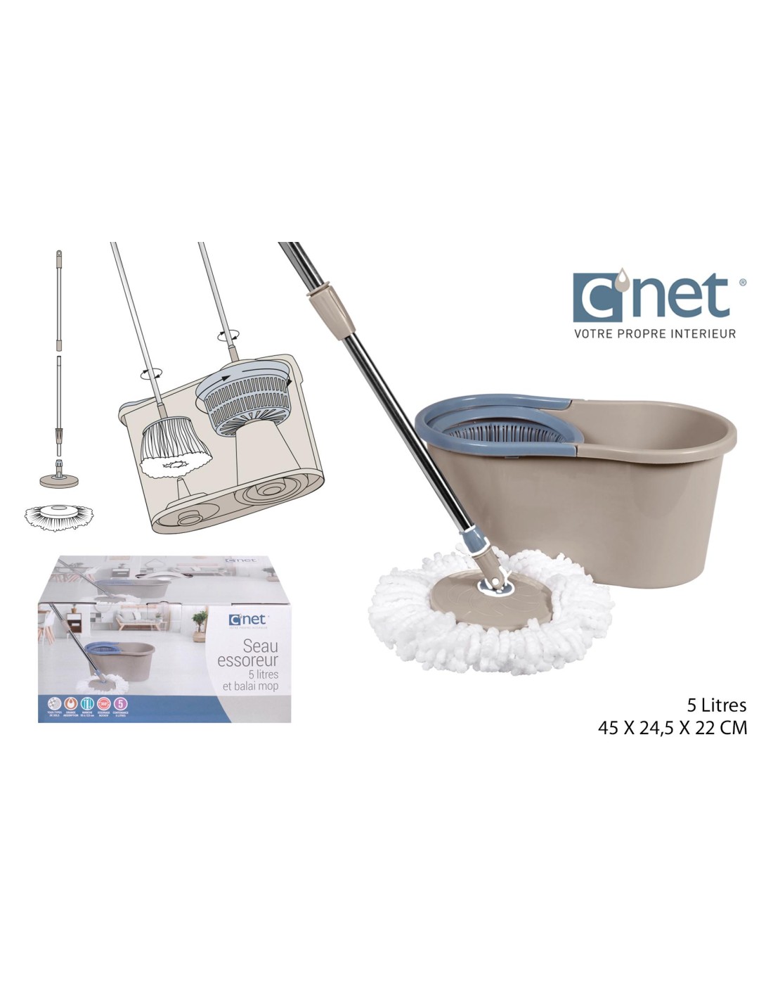 seaues009 - seau essoreur + mop microfibre