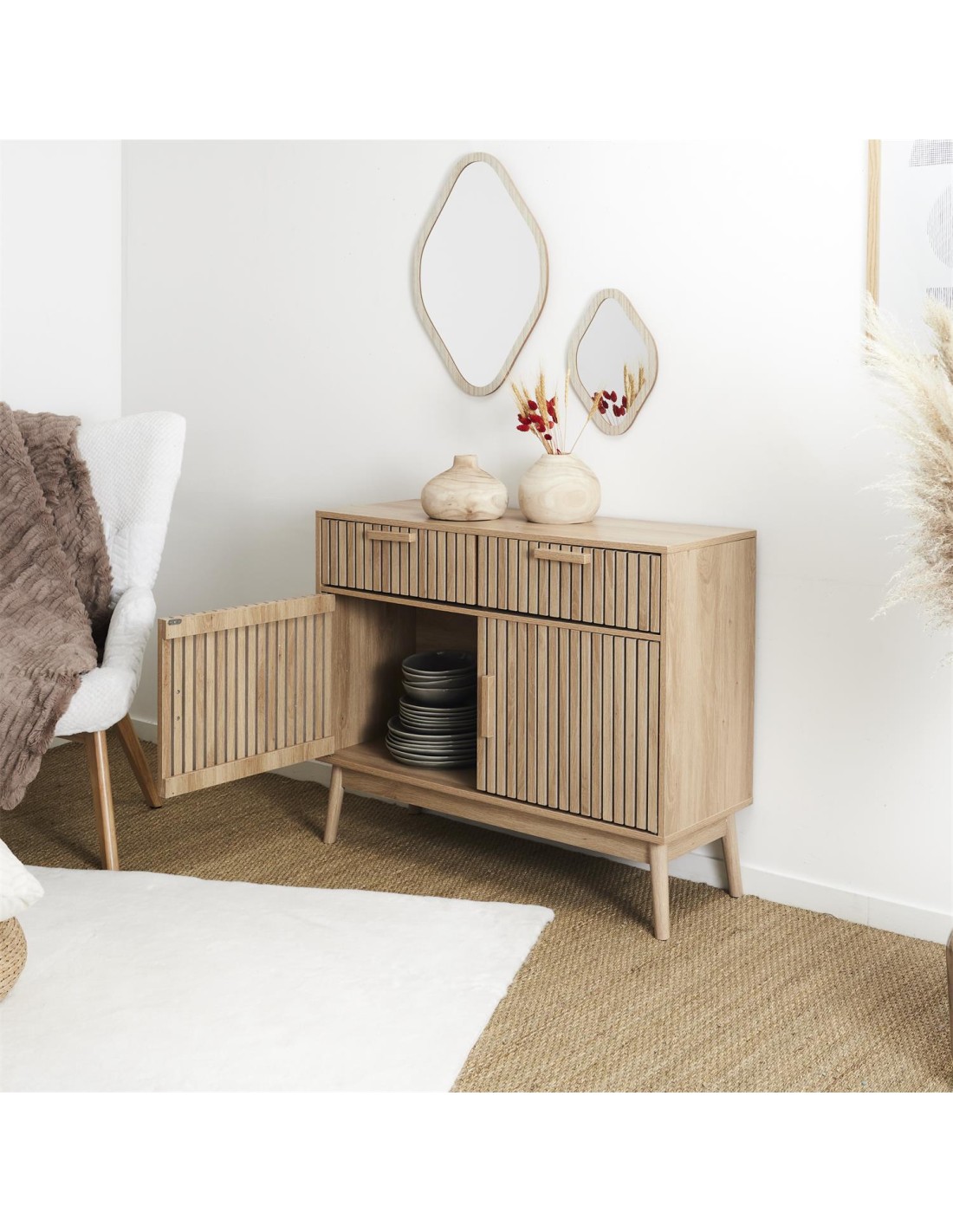 Rangez avec style dans votre salon ou dans votre chambre gréce é ce buffet Klaus ! Sublimez la présentation de vos livres et de vos objets décoratifs avec ce buffet bibliothéque design en bois claustra.Format du produit 100 x 80 x 35Composition 1 :Bois - Panneaux de particulesRangez avec style dans votre salon ou dans votre chambre gréce é ce buffet Klaus ! Sublimez la présentation de vos livres et de vos objets décoratifs avec ce buffet bibliothéque design en bois claustra.Format du produit 100 x 80 x 35Composition 1 :Bois - Panneaux de particules