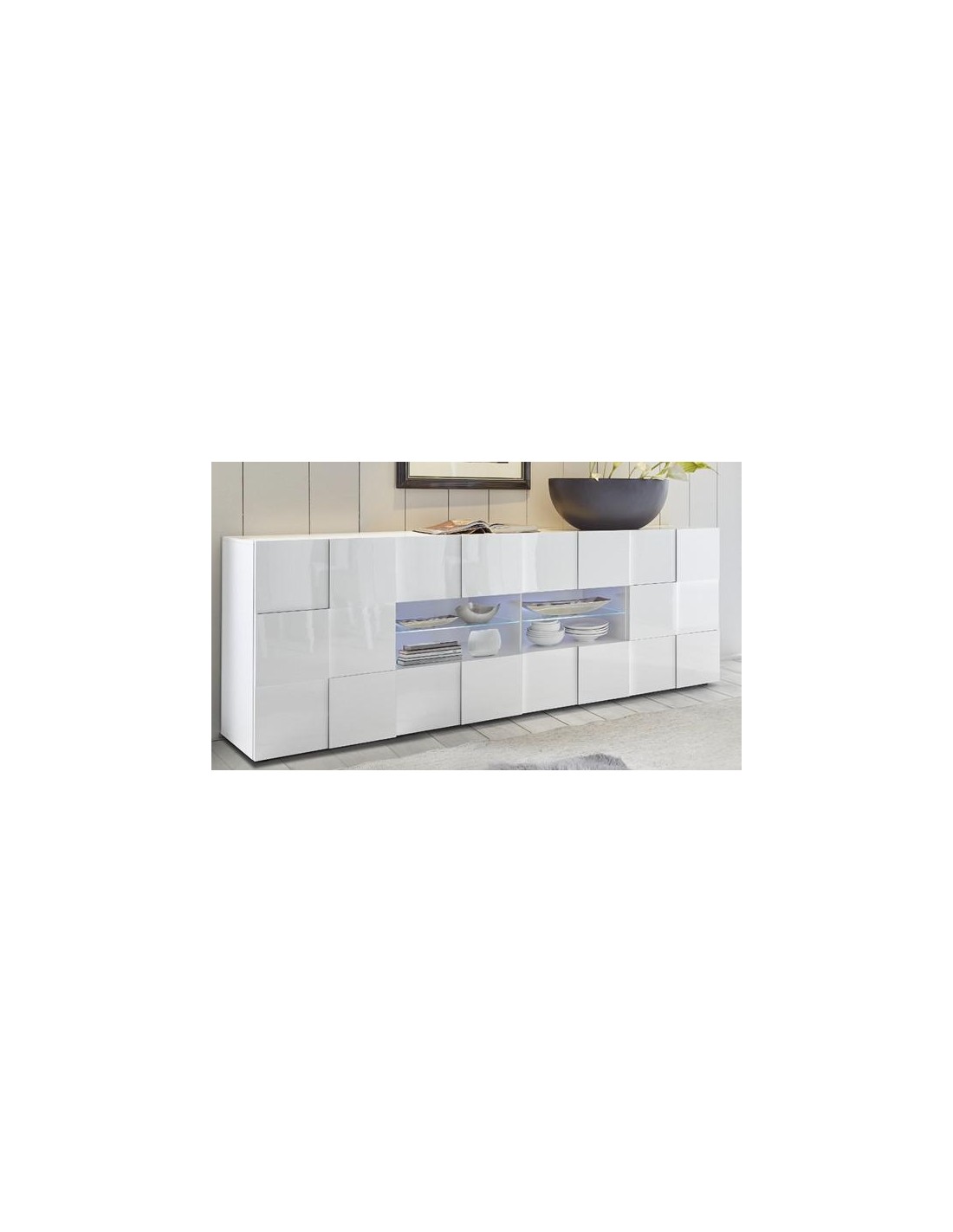 Buffet, meuble de rangement 4 portes coloris blanc brillant - Longueur 241 x hauteur 84 x profondeur 42 cmBuffet, meuble de rangement 4 portes coloris blanc brillant -Longueur 241 x hauteur 84 x profondeur 42 cm