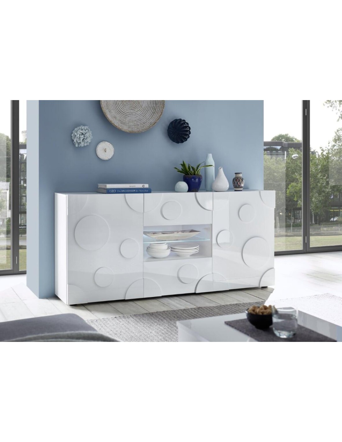 - 1 Buffet 4 portes et 1 tiroir (L x H x P) : 205 x 87 x 40 cmCaractéristiques:- Couleur: blanc laqué/chéne Cadiz- Panneaux de particules de premiére qualité- Structure et faéades en mélamine agglomére de bois épaisseur 16mm- Bandes sur les faéades/portes épaisseur 22 mm- Epaisseur étagéres en bois 16mm- Charniéres en métal- Glissiéres de tiroir en métal-...