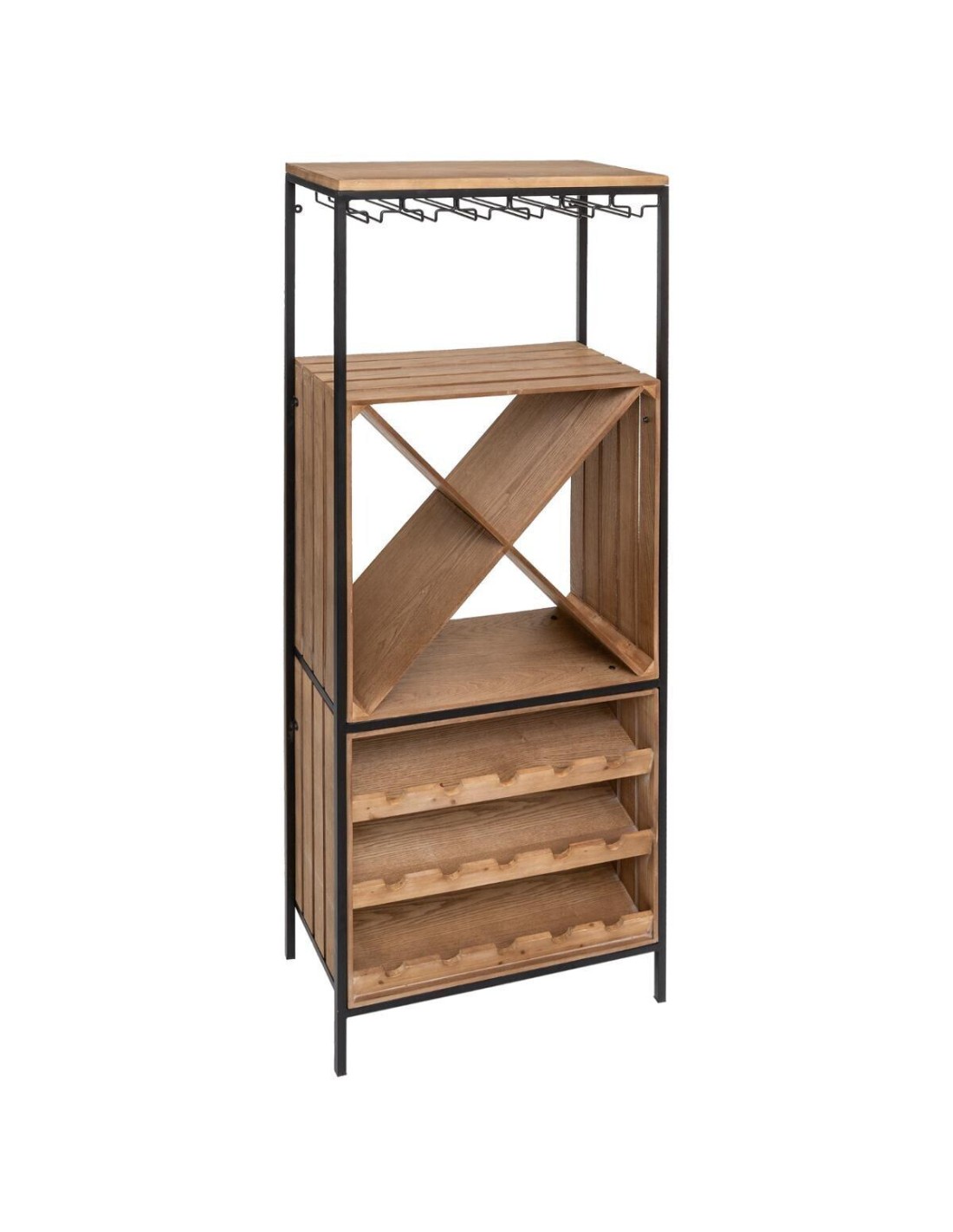 Dimensions : L. 60 x P. 30,5 x H. 160,5 cmHauteur étagéres verres : 16 cmH étagéres triangle : 26,5 cmHauteur étagéres supérieures : 38,5 cmMatiére de la structure : FerMatiére des étagéres + plateau : MDF - Panneau de fibres de boisMatiére du placage : FréneFinition : Laque nitrocelluloseé monter soi-méme : NonPoids : 19,5 kg