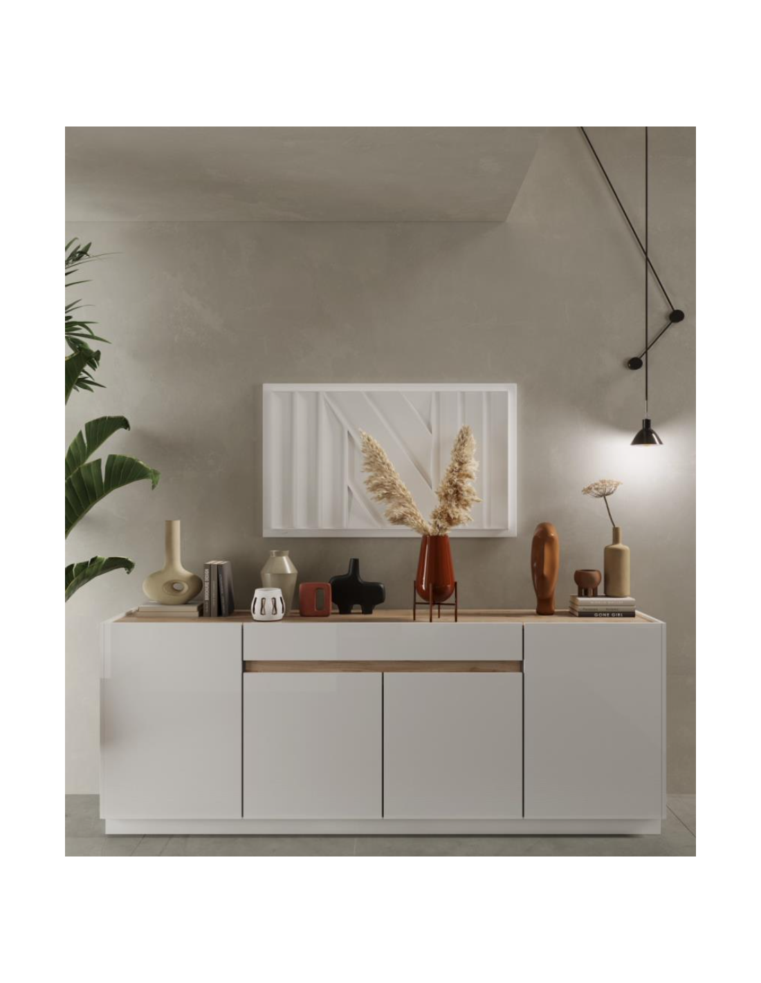 - 1 Buffet 4 portes et 1 tiroir (L x H x P) : 205 x 87 x 40 cmCaractéristiques:- Couleur: blanc laqué/chéne Cadiz- Panneaux de particules de premiére qualité- Structure et faéades en mélamine agglomére de bois épaisseur 16mm- Bandes sur les faéades/portes épaisseur 22 mm- Epaisseur étagéres en bois 16mm- Charniéres en métal- Glissiéres de tiroir en métal- Socle en mélaminé aggloméré de bois épaisseur 16mmFabriqué entiérement en ItalieDIM205 X 87 X 40CM- 1 Buffet 4 portes et 1 tiroir (L x H x P) : 205 x 87 x 40 cmCaractéristiques:- Couleur: blanc laqué/chéne Cadiz- Panneaux de particules de premiére qualité- Structure et faéades en mélamine agglomére de bois épaisseur 16mm- Bandes sur les faéades/portes épaisseur 22 mm- Epaisseur étagéres en bois 16mm- Charniéres en métal- Glissiéres de tiroir en métal- Socle en mélaminé aggloméré de bois épaisseur 16mmFabriqué entiérement en ItalieDIM205 X 87 X 40CM