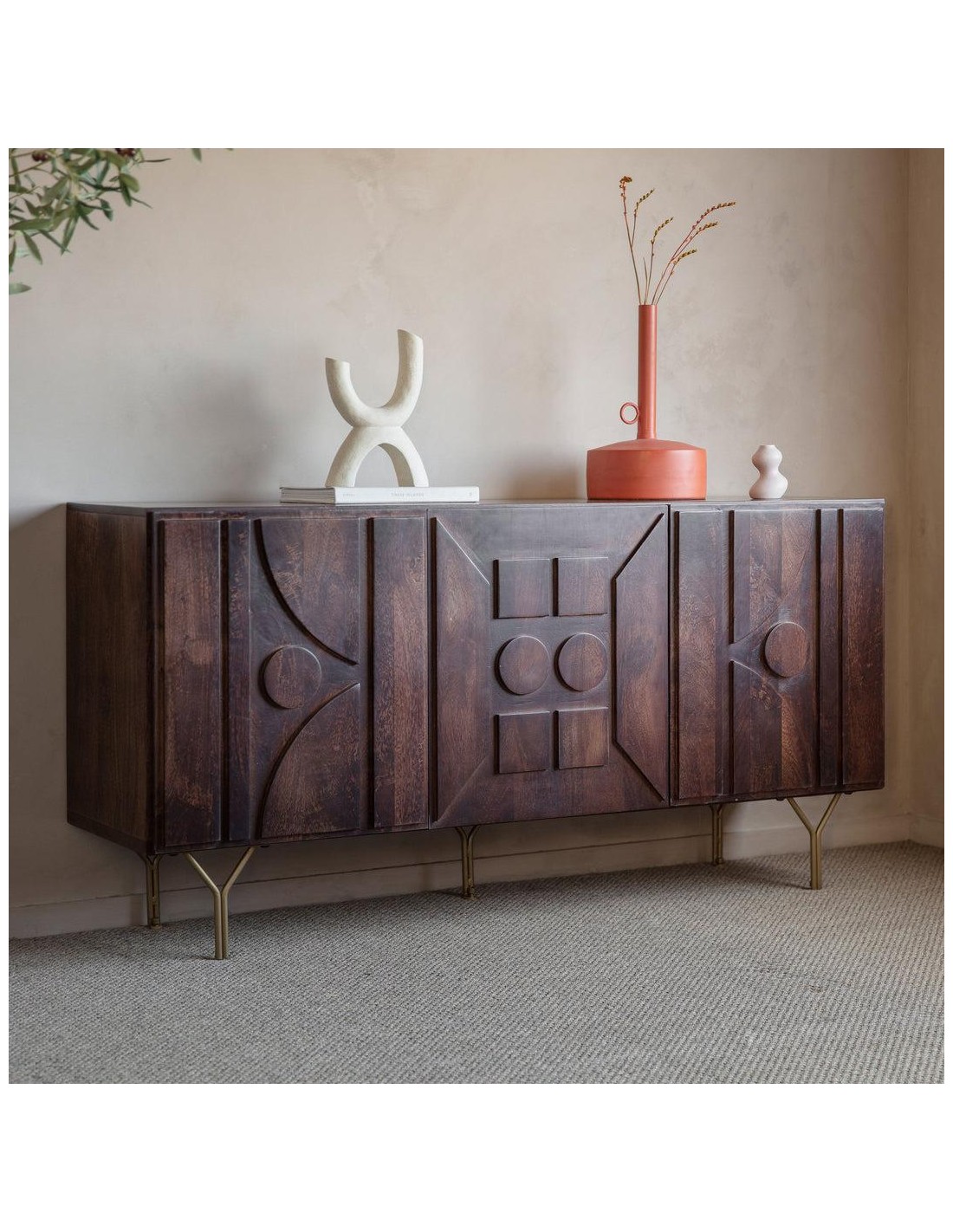 prit77 - buffet 3 portes luija manguier - 80x160x45cm