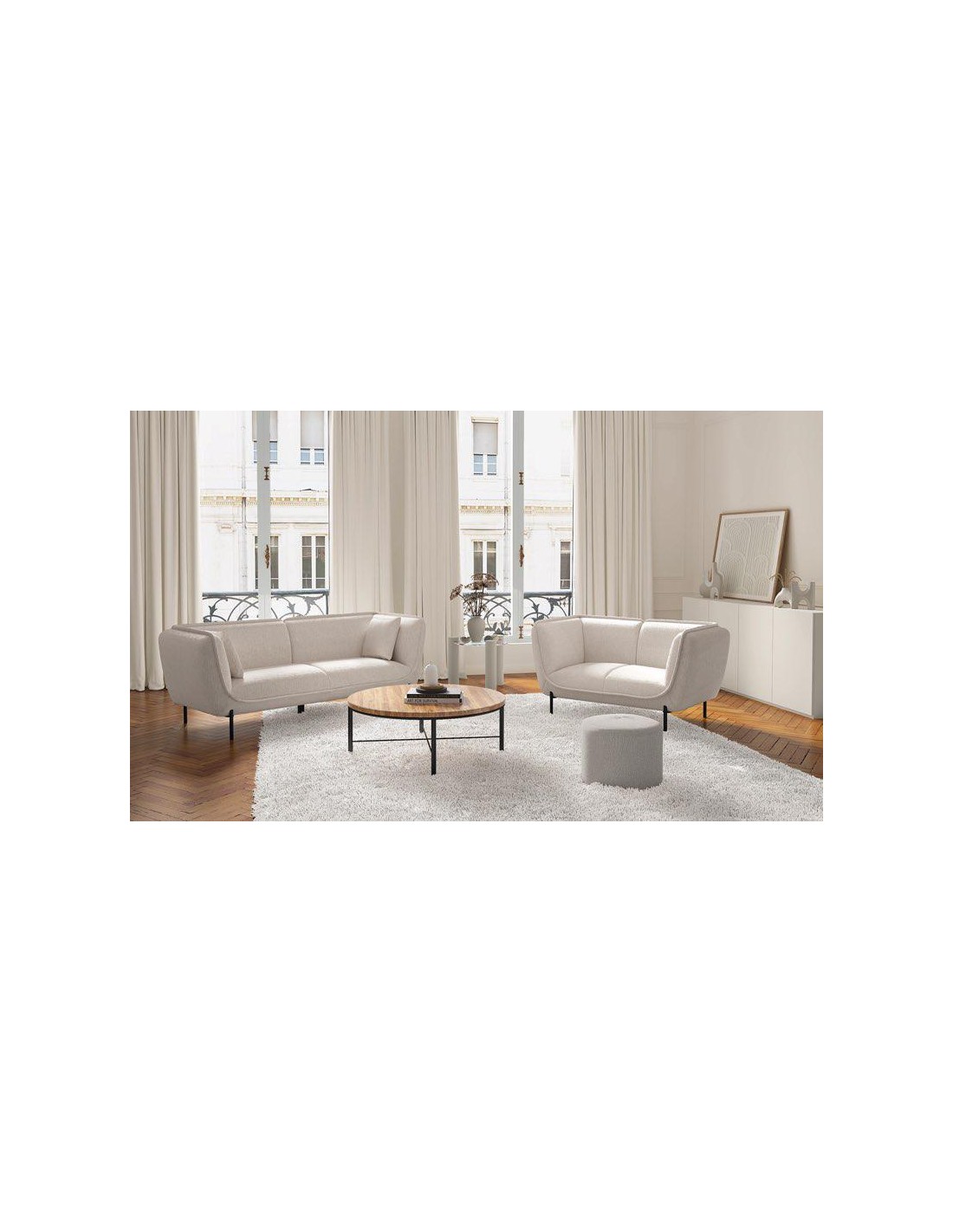 canape astoria 4places/pieds noirs - 220x83x83cm - beige bouclette