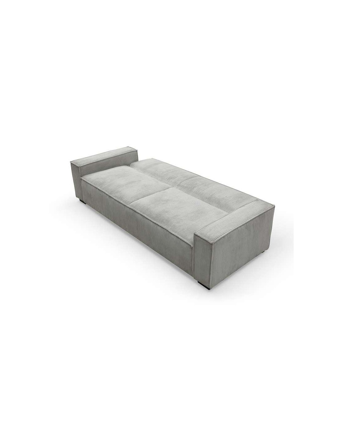Canapdroit 3 places convertible. Structure en Pin / Hre et panneaux de particules. Pieds en PVC. Matie du rembourrage Mousse PU densit28 kg/m3. Dim. : 230 x 94 x 75 cm.