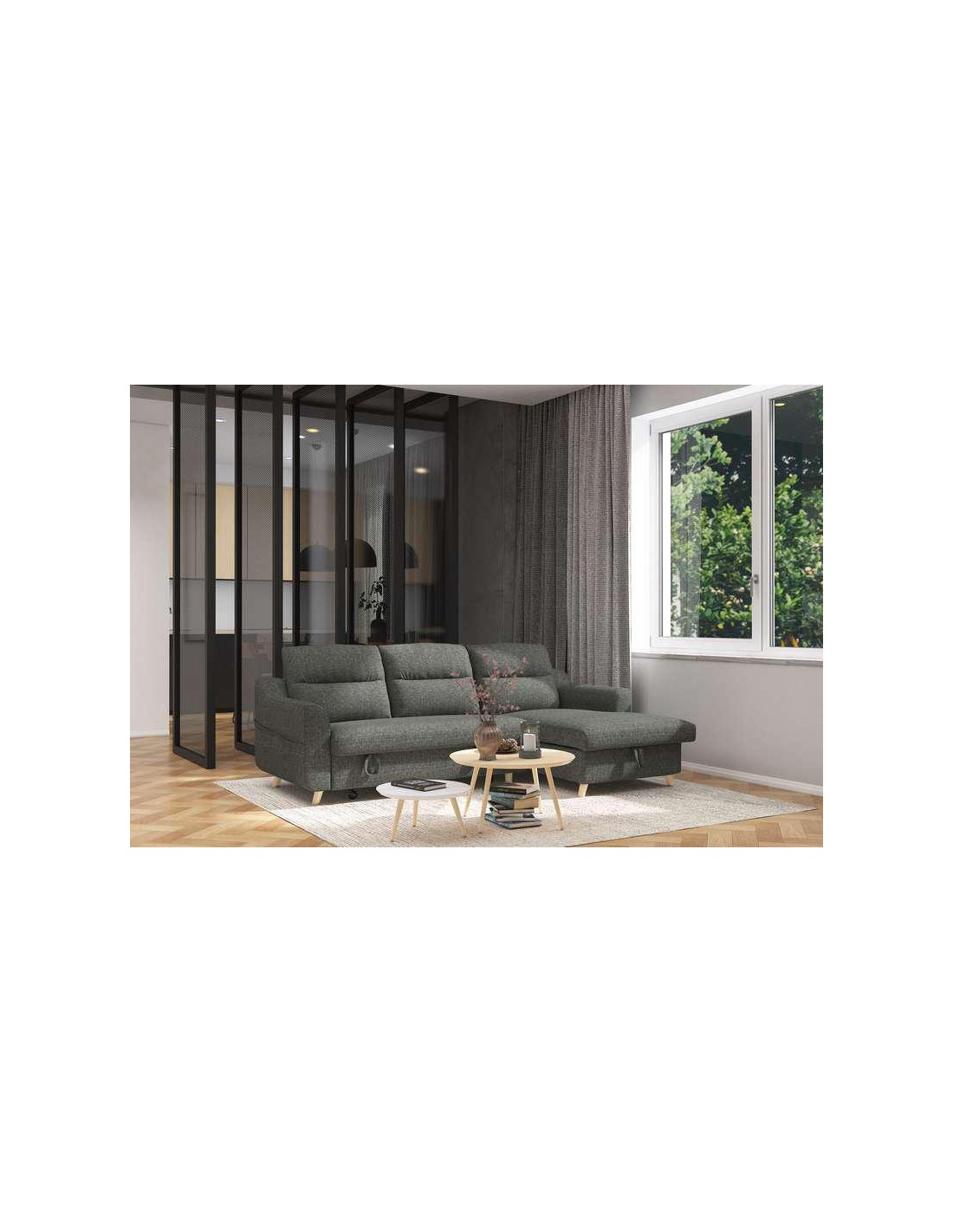 Canapé dangle 3 places en tissus velouté convertible avec coffre de rangement. Structure renforcée et confort dassise.Garnissage et suspension assise: mousse 38 kg/M3 avec ressorts.Canapé dangle 3 places en tissus velouté convertible avec coffre de rangement.Structure renforcée et confort dassise.Garnissage et suspension assise: mousse 38 kg/M3 avec ressorts.