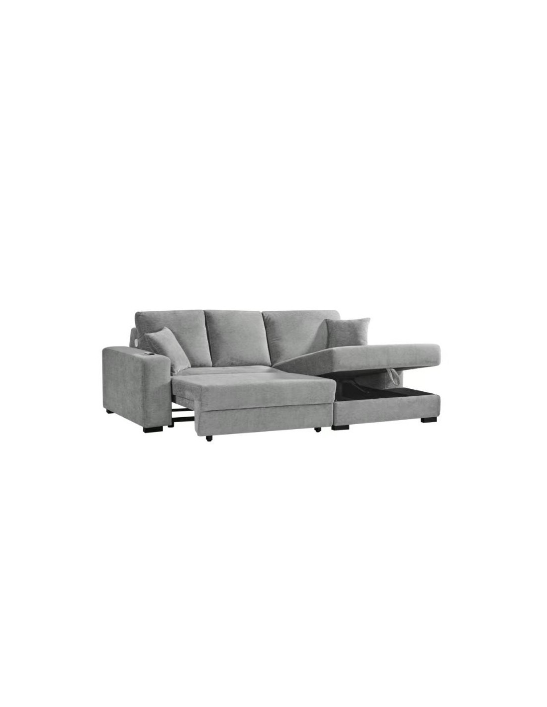 Magnifique canapé convertible avec coffre La partie centrale du siége du canapé-lit comprend des porte-gobelets, offrant un design endroit désigné pour vos boissons. Restez connecté et gardez vos appareils chargés avec le port USB intégré. Structure en Pin / Hétre et panneaux de particules. Pieds en PVC. Matiére du rembourrage Mousse PU densité 28 kg/m3....