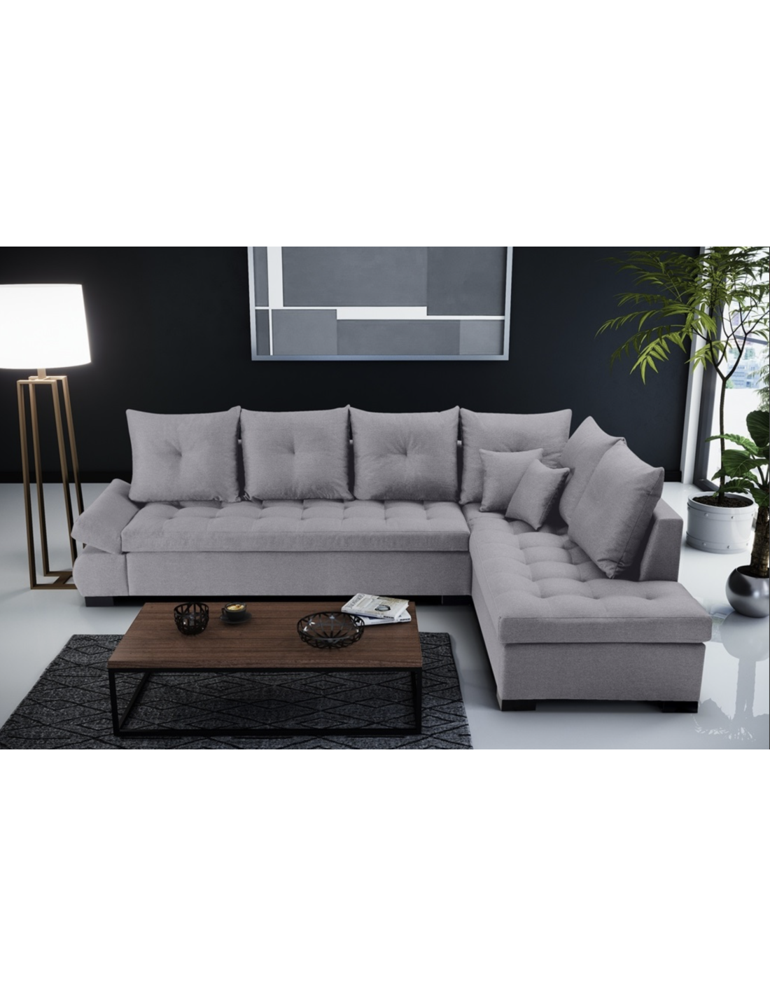 Dimension :L.228 x 147 x H.86 cmMagnifique Canapé dangle réversible convertible coffre de rangement en tissuDimension :L.228 x 147 x H.86 cmMagnifique Canapé dangle réversible convertible coffre de rangement en tissu