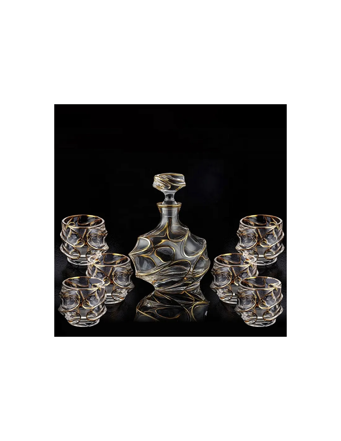 carafe 4 - set diamant 6 verres + 1 carafe biseauté bords doré - 1282 / 360 ml
