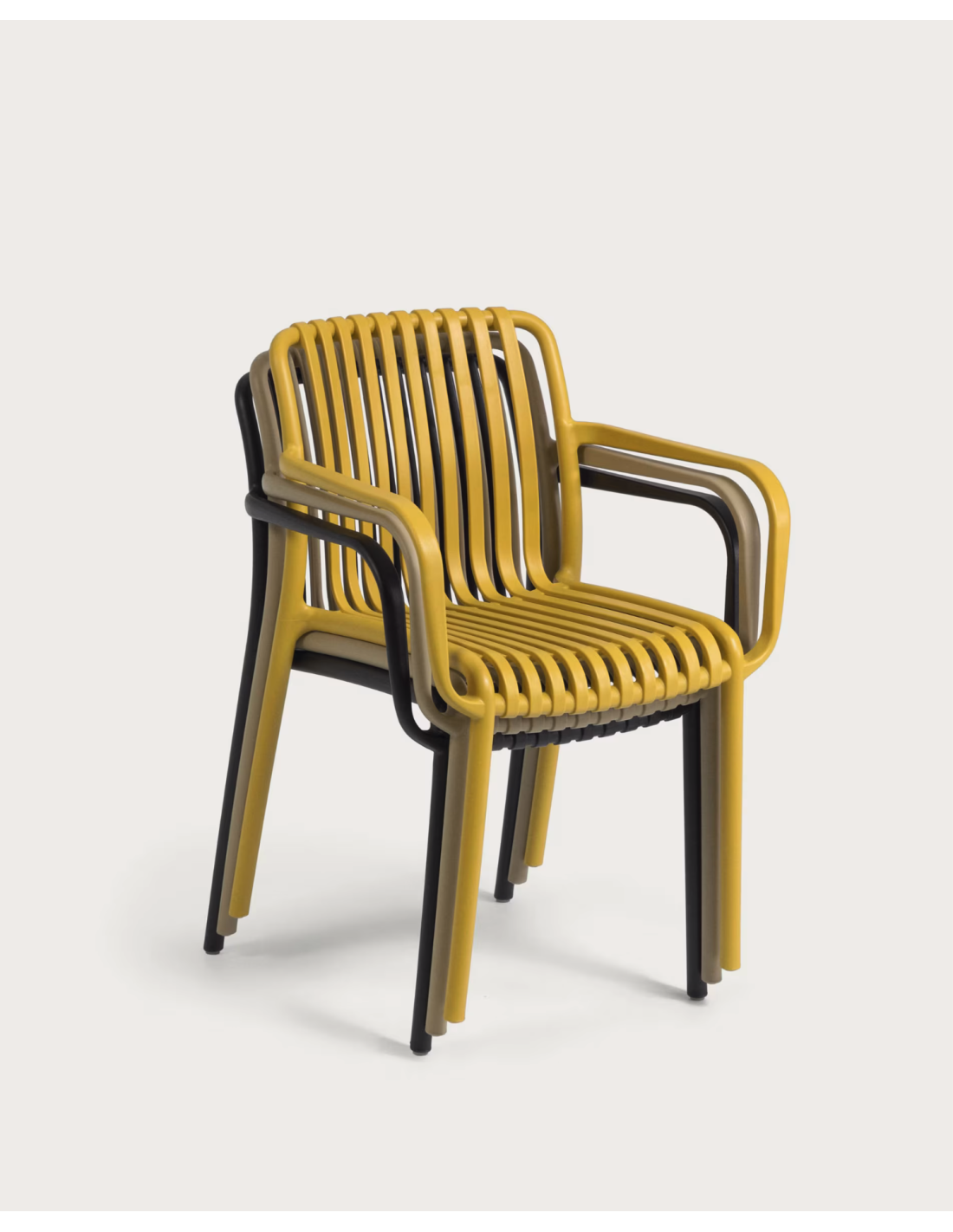 Le fauteuil Mila est produit avec une seule injection de polypropyléne renforcé de fibre de verre obtenu au moyen de la derniére génération de technologie de moulage par air avec des tons neutres. Pour usage intérieur et extérieur.