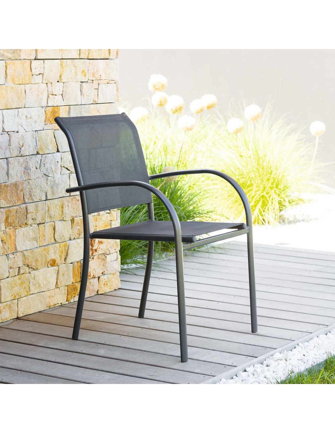 Chaise de jardin avec accoudoirs. Caractérisé par son design é la fois aéré et intemporel, cette collection sadapte partout.