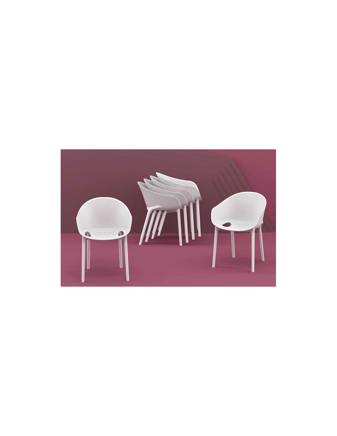 Le fauteuil Mila est produit avec une seule injection de polypropyléne renforcé de fibre de verre obtenu au moyen de la derniére génération de technologie de moulage par air avec des tons neutres. Pour usage intérieur et extérieur.