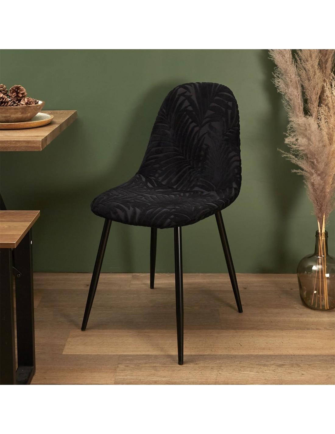 Existe en plusieurs coloris Chaise en tissus et pieds noirsDim :63 x53 x81 cmExiste en plusieurs colorisChaise en tissus et pieds noirsDim :63 x53 x81 cm