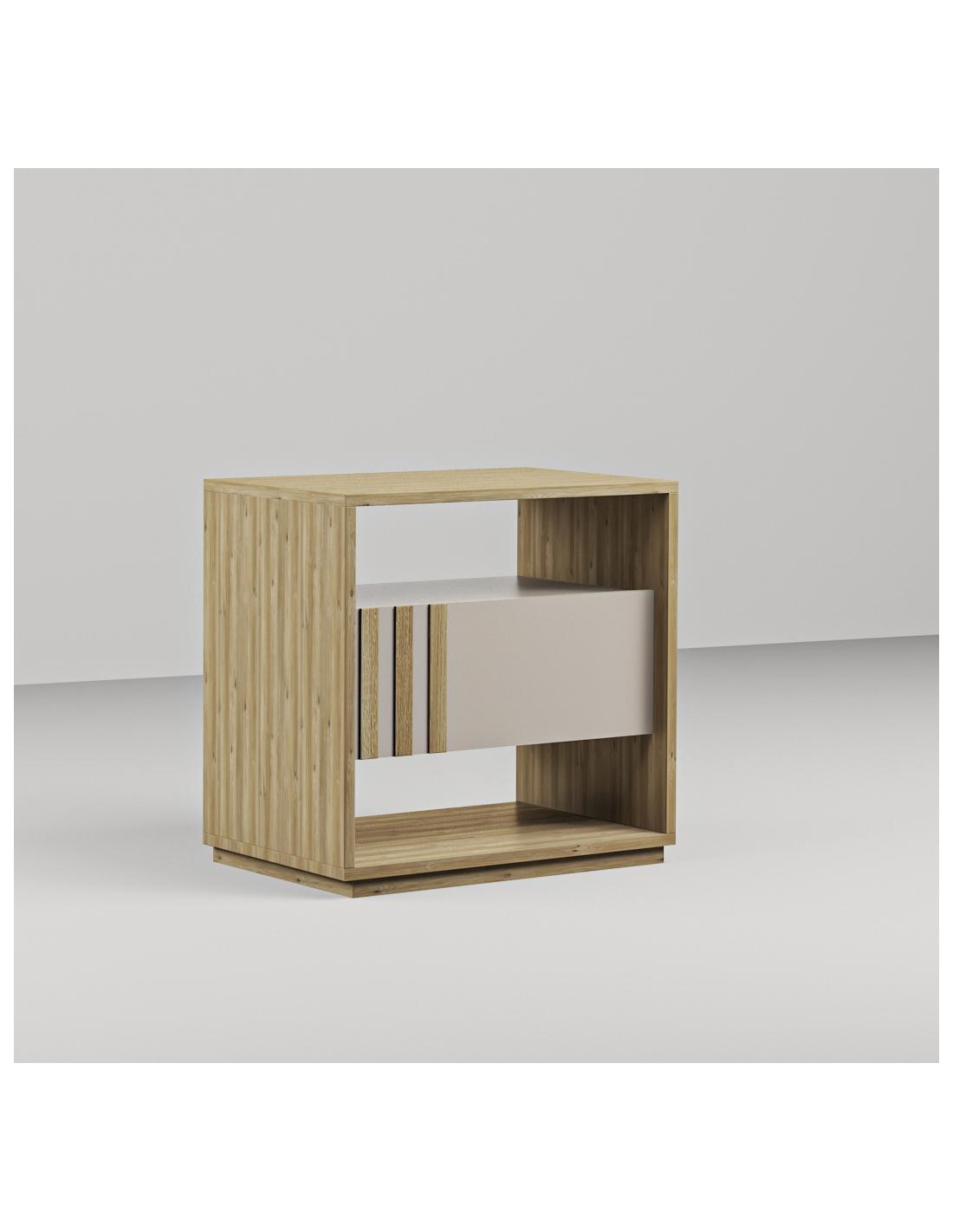 Dimensions : L. 47,1 x P. 30 x H. 65,5 cmMatiére de la structure & tiroir : MDF - Panneau de fibres de boisMatiére des pieds : PinMatiére placage plateau : Paulownia
