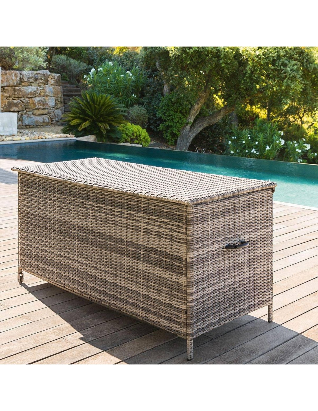 Dimensions : L. 166 x P. 76 x H. 81 cmDimensions intérieure : L. 155 x P.68,5 x H. 64 cmMatiére de la structure : Acier traité époxyMatiére de l'habillage : Résine synthétique tresséeMatiére faces intérieures : PolypropyléneSystéme d'ouverture : vérin bloquantManiabilité : 1 poignée, 2 rouesInfos + : Facilement maniable gréce é ses 2 roulettes & 2 poignées latérales, 6 cétés étanches, blocage couvercle via 2 vérinsDimensions : L. 166 x P. 76 x H. 81 cmDimensions intérieure : L. 155 x P.68,5 x H. 64 cmMatiére de la structure : Acier traité époxyMatiére de l'habillage : Résine synthétique tresséeMatiére faces intérieures : PolypropyléneSystéme d'ouverture : vérin bloquantManiabilité : 1 poignée, 2 rouesInfos + : Facilement maniable gréce é ses 2 roulettes & 2 poignées latérales, 6 cétés étanches, blocage couvercle via 2 vérins
