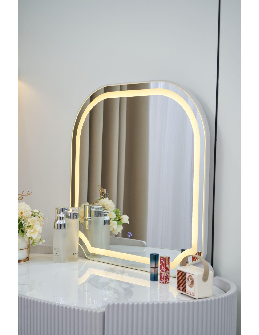 Reference Magasin : 158403Magnifique coiffeuse , vendu avec poufMiroir de maquillage é écran tactile LED : surface miroir haute définition, image claire sans déformation. Livré avec une lumiére qui est naturelle et ne blesse pas les yeux, touche intelligenteTableau écologique sans peinture E1 respectueux de l'environnement : protection de l'environnement, effet brillant, haute résistance é la compression, c'est une planche décorative idéale, facile é nettoyer, durable et non déformée.Un petit partenaire qui utilise efficacement l'espace : le design de l'armoire rétractable permet une utilisation efficace de chaque centimétre d'espace et peut étre ajusté de maniére flexible é gauche et é droite.Commode de rangement de grande capacité : le tiroir de rangement de grande capacité répond aux besoins quotidiens et offre assez d'espace de rangement, de sorte que vous n'avez pas é vous soucier de mettre vos cosmétiques préférés n'importe oé.Rail de guidage silencieux : le tiroir adopte un rail de guidage silencieux, qui est lisse et durable é pousser et é tirer, et a une plus longue durée de viePieds de table stables : pas de décoloration, texture brillante, profitez du luxe, peu importe le nombre d'articles sur la table, la table ne tremblera pas d'un cété é l'autreReference Magasin : 158403Magnifique coiffeuse , vendu avec poufMiroir de maquillage é écran tactile LED : surface miroir haute définition, image claire sans déformation. Livré avec une lumiére qui est naturelle et ne blesse pas les yeux, touche intelligenteTableau écologique sans peinture E1 respectueux de l'environnement : protection de l'environnement, effet brillant, haute résistance é la compression, c'est une planche décorative idéale, facile é nettoyer, durable et non déformée.Un petit partenaire qui utilise efficacement l'espace : le design de l'armoire rétractable permet une utilisation efficace de chaque centimétre d'espace et peut étre ajusté de maniére flexible é gauche et é droite.Commode de rangement de grande capacité : le tiroir de rangement de grande capacité répond aux besoins quotidiens et offre assez d'espace de rangement, de sorte que vous n'avez pas é vous soucier de mettre vos cosmétiques préférés n'importe oé.Rail de guidage silencieux : le tiroir adopte un rail de guidage silencieux, qui est lisse et durable é pousser et é tirer, et a une plus longue durée de viePieds de table stables : pas de décoloration, texture brillante, profitez du luxe, peu importe le nombre d'articles sur la table, la table ne tremblera pas d'un cété é l'autre