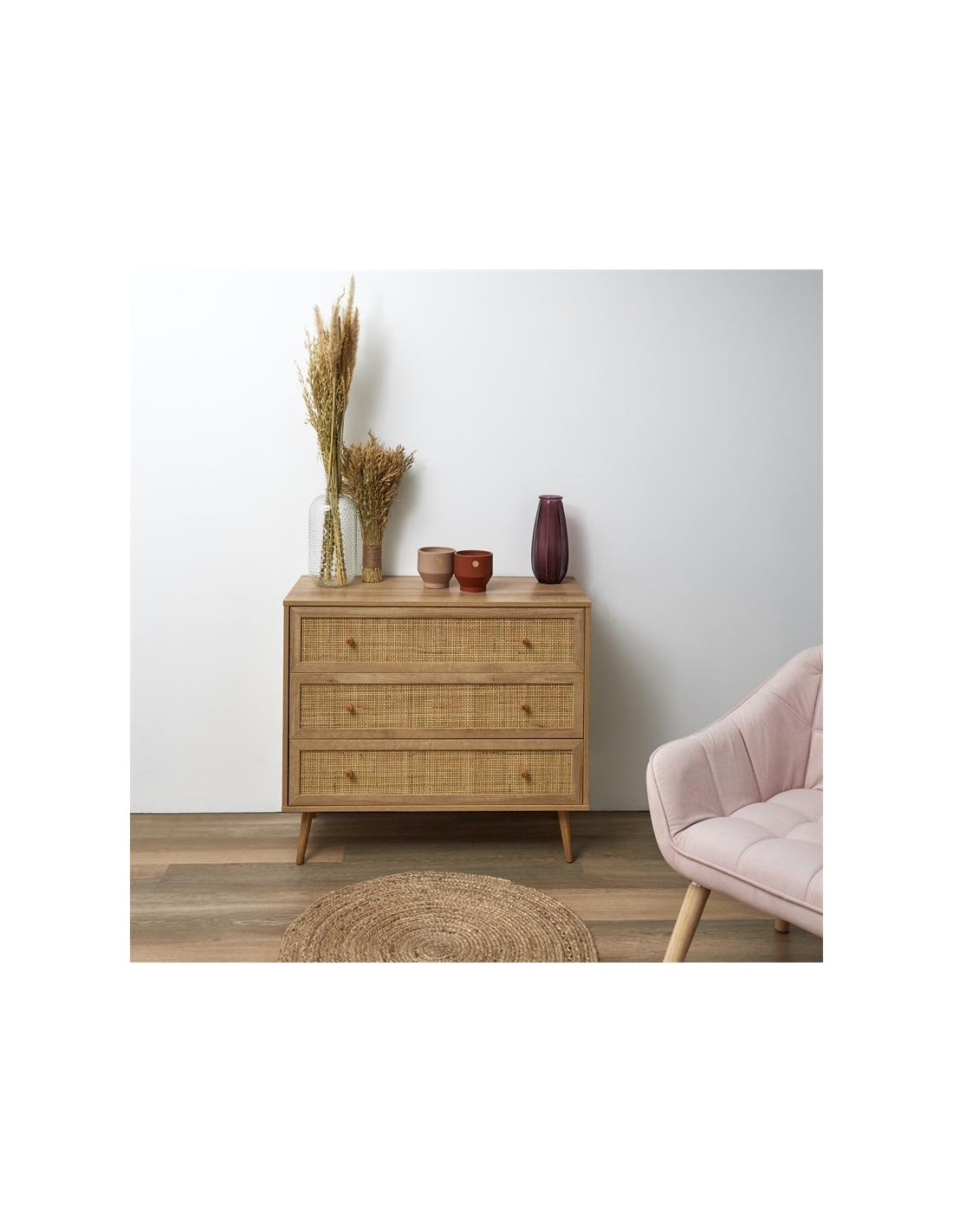 COMMODE : L114xP40xH90En bois massif de manguier et rotin*Photos non-contractuellesN.B : Chaque piéce est unique. Des aspérités, des noeuds charismatiques, des fissures ou des différences dimensionnelles sont possibles. Ces caractéristiques distinctives font le charme de nos meubles et ne peuvent en aucun cas faire office de réclamation.COMMODE :...