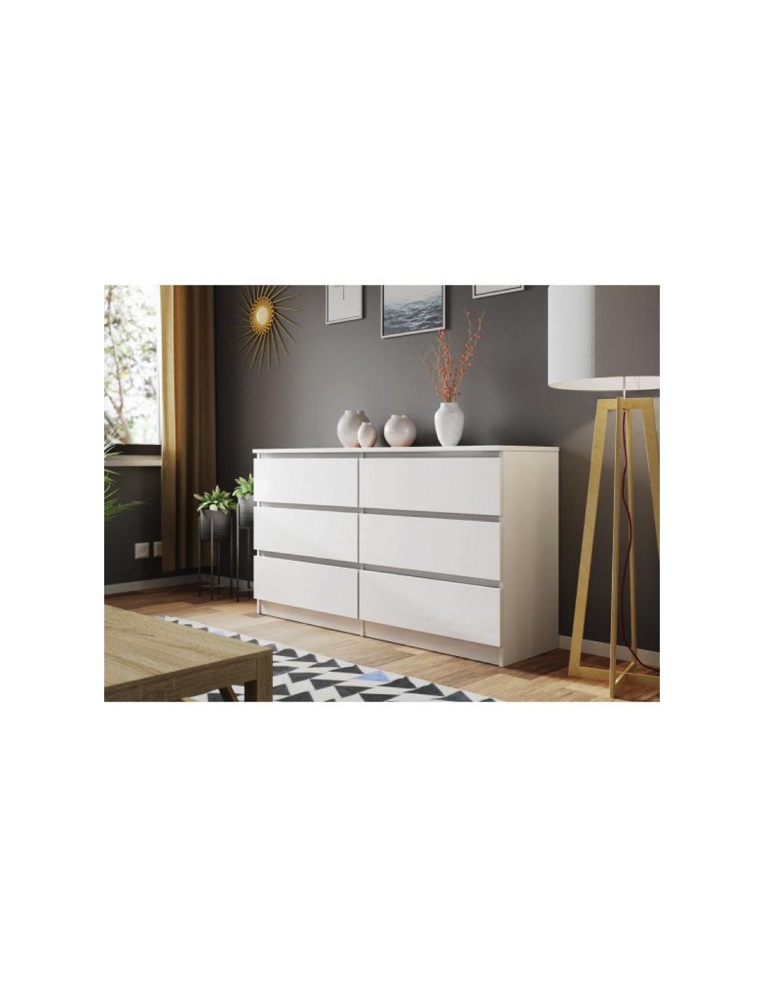 MALWA 140 CM est une commode élégante conéue pour le rangement. Le meuble est équipé de deux rangées de tiroirs symétriques gréce auxquels la commode a une capacité et une fonctionnalité supérieures é la moyenne. La profondeur optimale de chaque tiroir permet de ranger é la fois de petits accessoires et des articles plus volumineux. L'utilisation quotidienne de la commode pour le salon est facilitée par un systéme d'ouverture sans poignée et des composants de haute qualité dont le mobilier est équipé. Dimensions: largeur : 139 cm hauteur : 77 cm profondeur : 40 cm