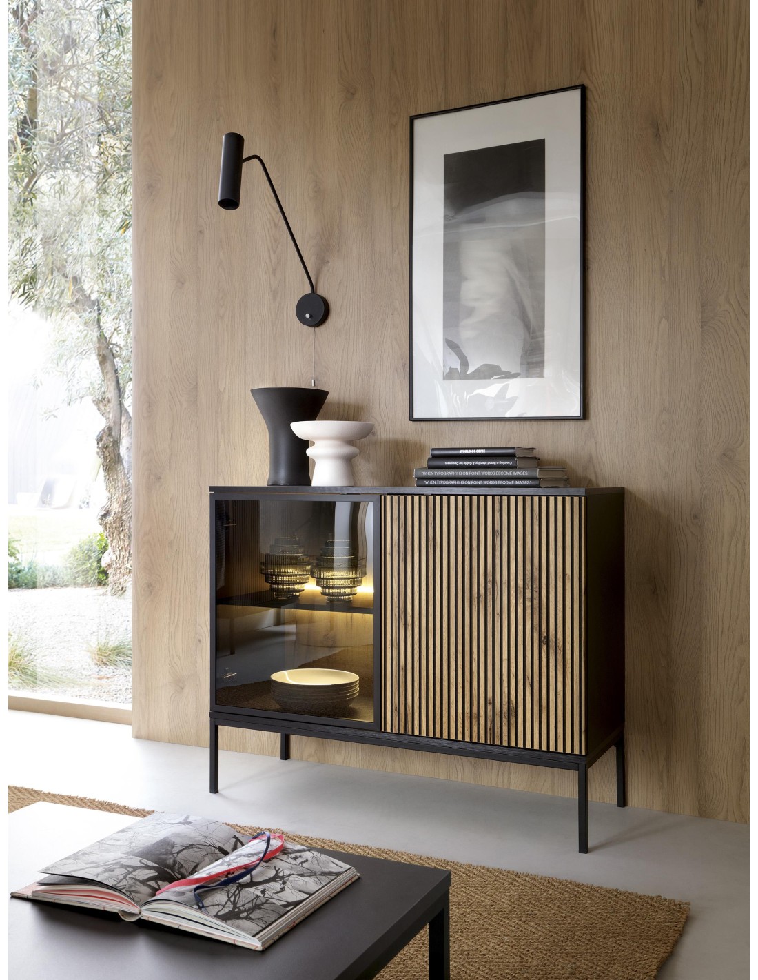 Coloration : Noir / Chéne WotanMatériel : Panneau de meubles stratifié, panneau de meubles MDFSystéme d'ouverture : APPUYEZ POUR OUVRIRJambes : Métal, noirDIMENSION 104 X 83 X 39CMColoration : Noir / Chéne WotanMatériel : Panneau de meubles stratifié, panneau de meubles MDFSystéme d'ouverture : APPUYEZ POUR OUVRIRJambes : Métal, noirDIMENSION 104 X 83 X 39CM