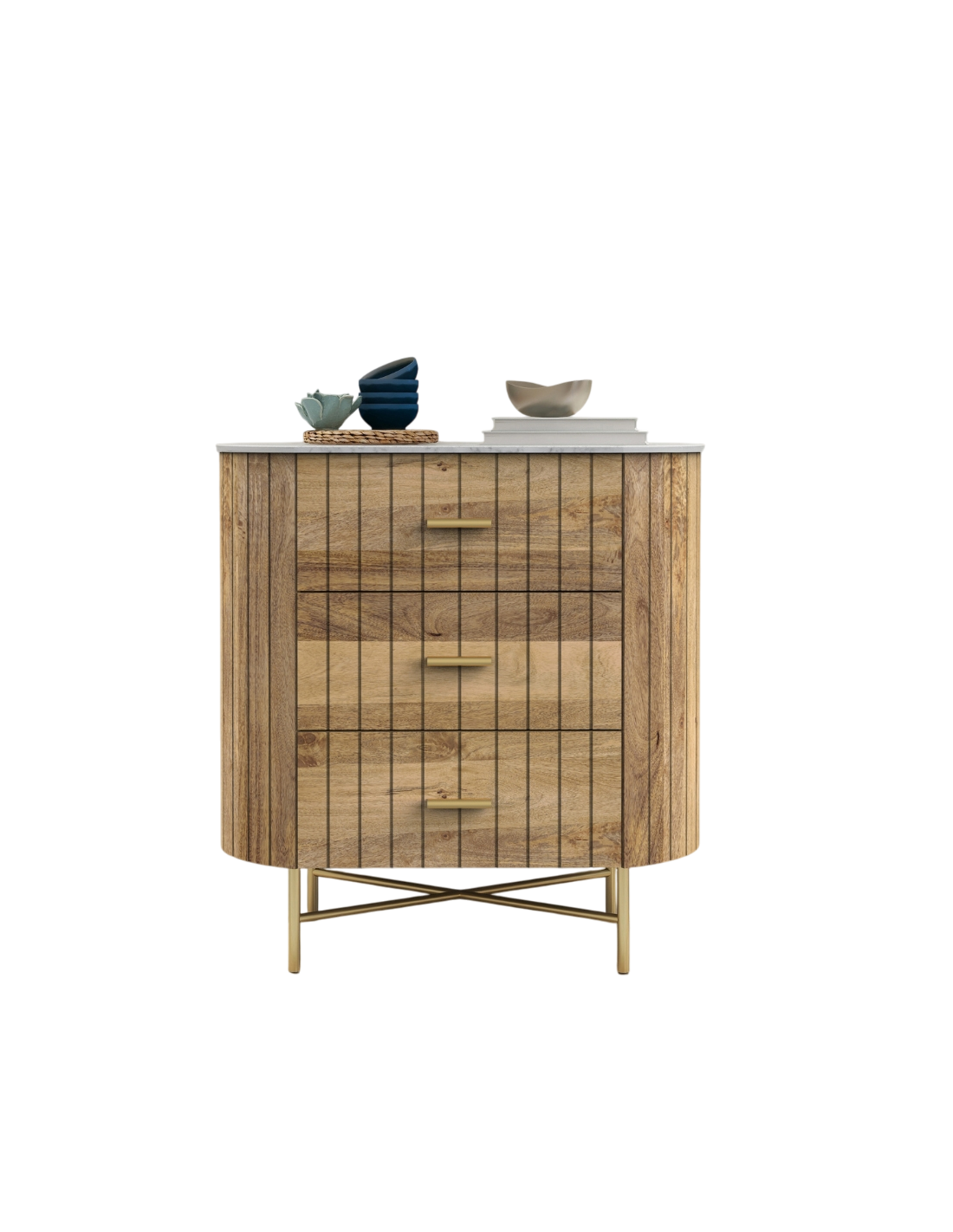 prit48 - commode 3 tiroirs piano marbre/acacia - 81x46x86cm