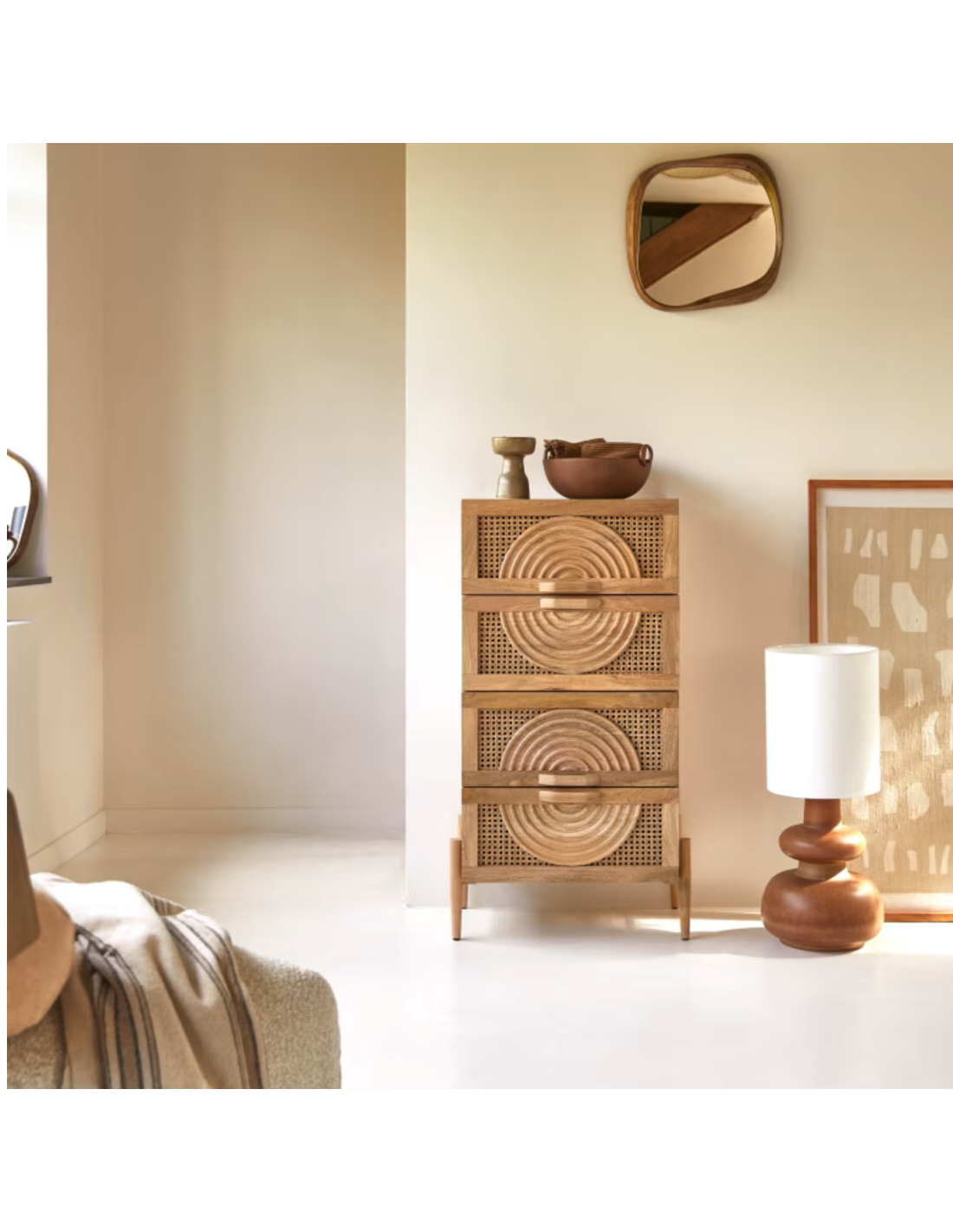 prit84 - chiffonnier sina manguier / rotin - 40x54x110cm