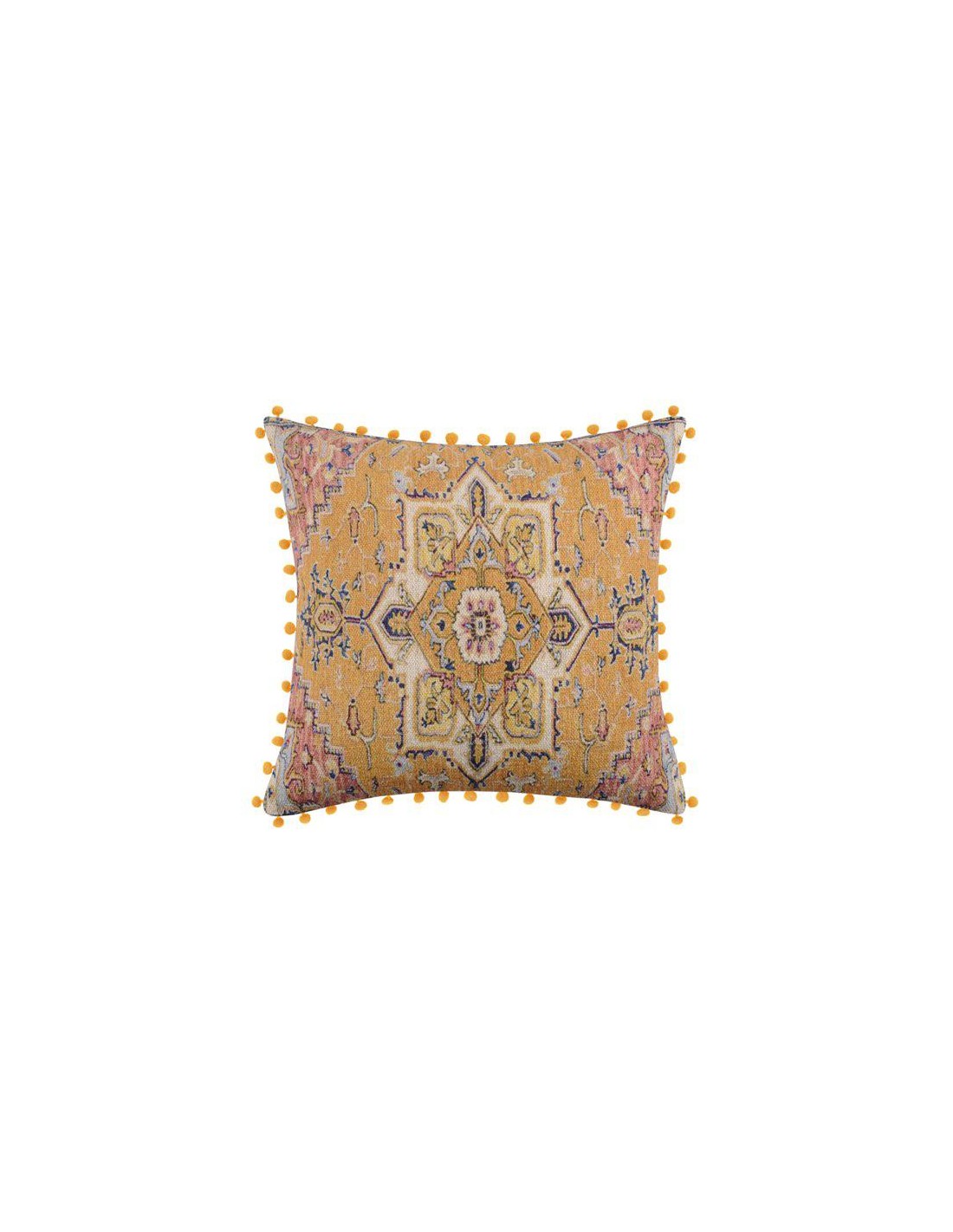 coussin dehous. compr. pompons 40x40 cm jute imprime/polycoton uni kalinda blanc
