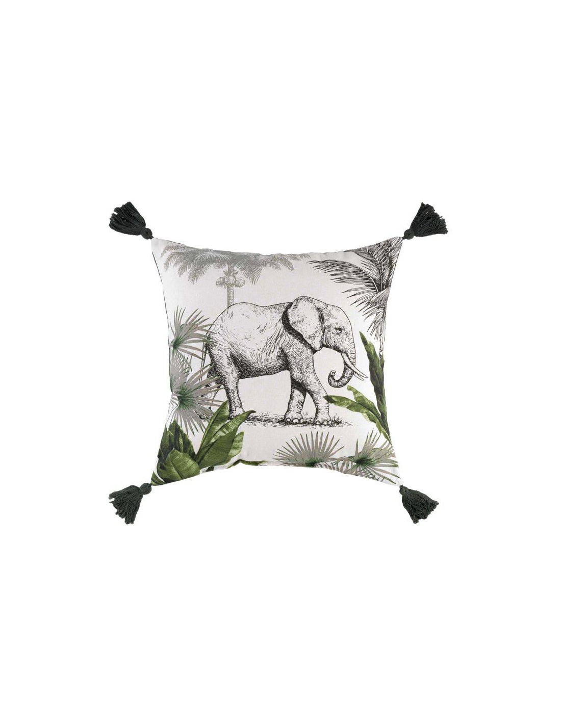 1609920 - coussin dehoussable pompons 40x40 cm polycoton imp.+jute bahina blanc