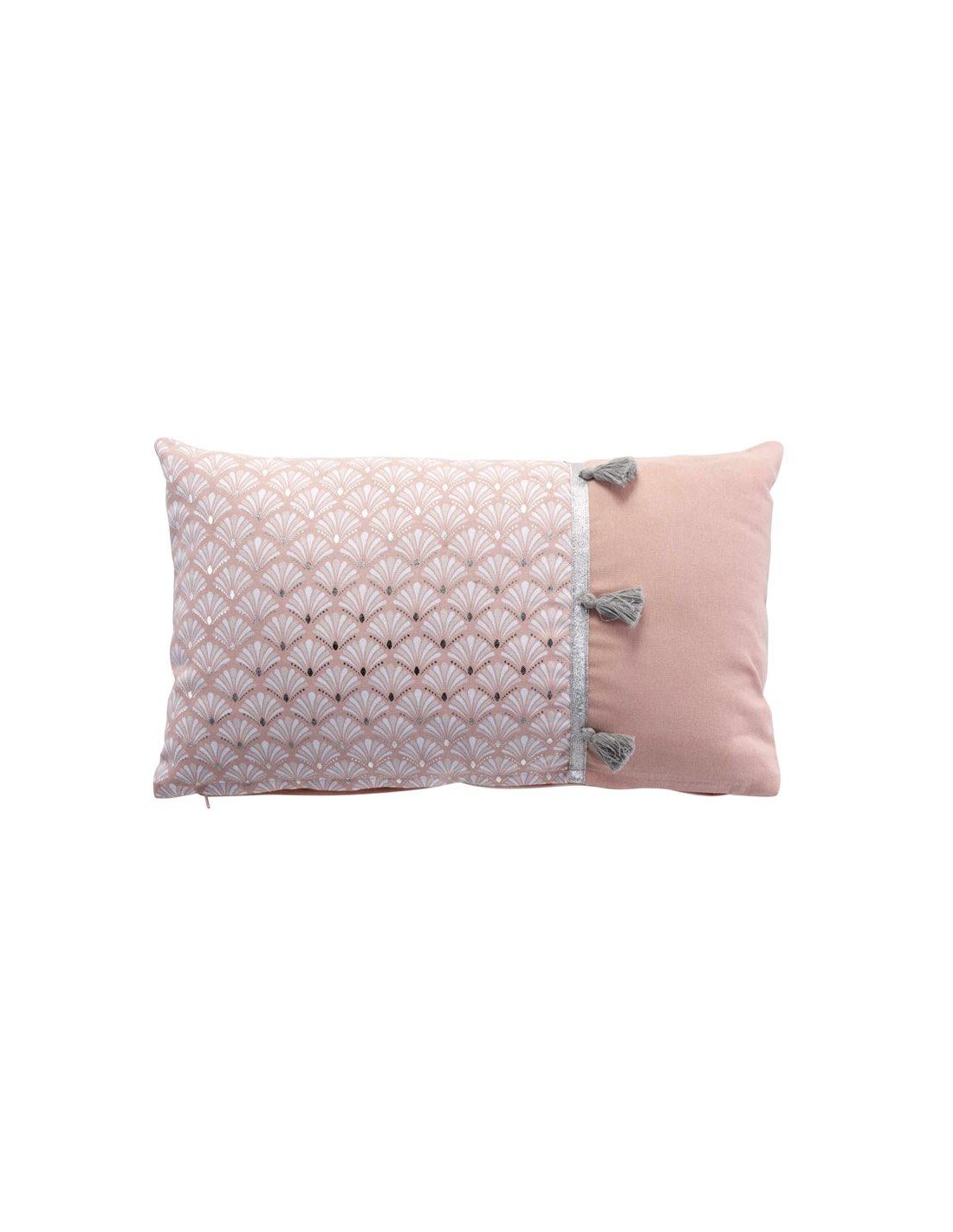 coussin dehoussable pompons 30x50 cm coton imp. metallise artchic bleu des place